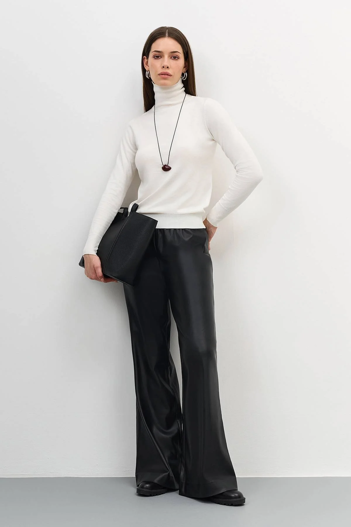 Широкие брюки палаццо из мягкой экокожи. Прямой силуэт. Резинка по линии талии.