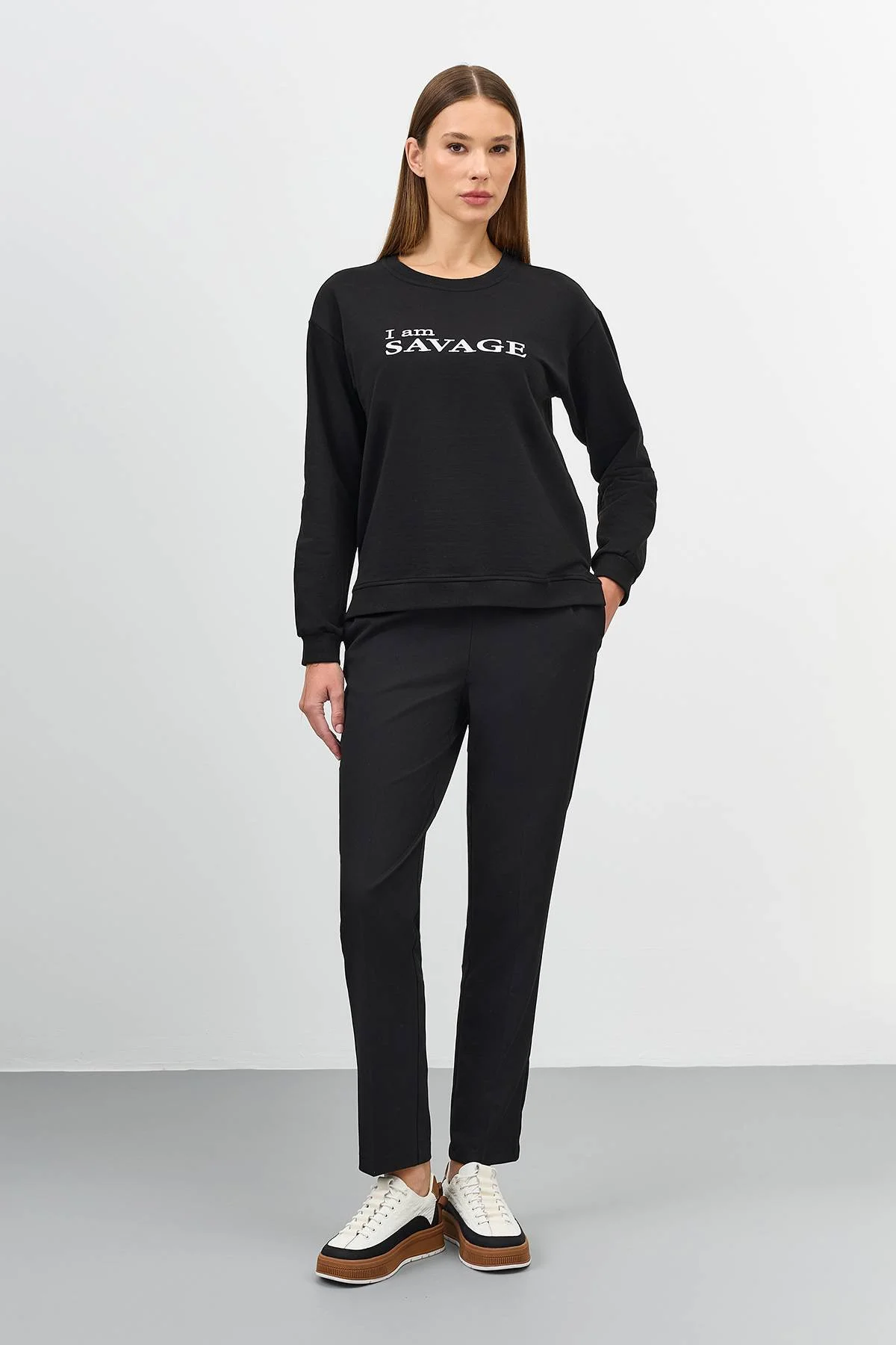 Черные брюки с карманами, 52