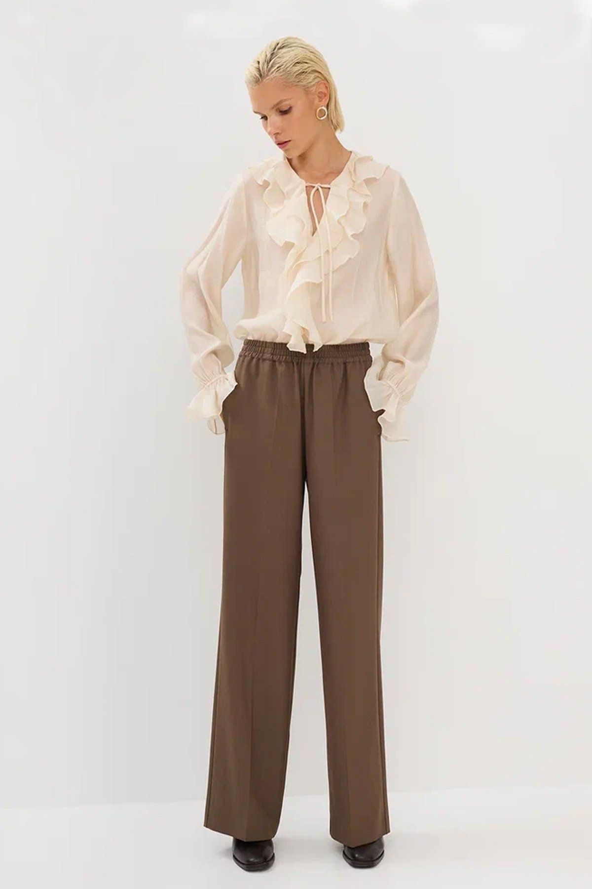 Коричневые брюки с резинкой на талии, 50р