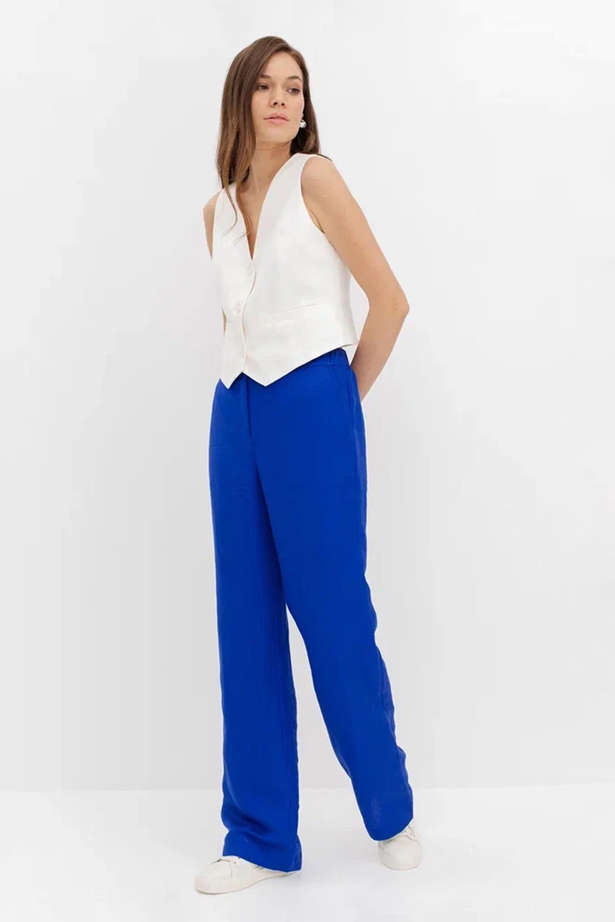 Прямые брюки синего цвета из льна и вискозы, 44р