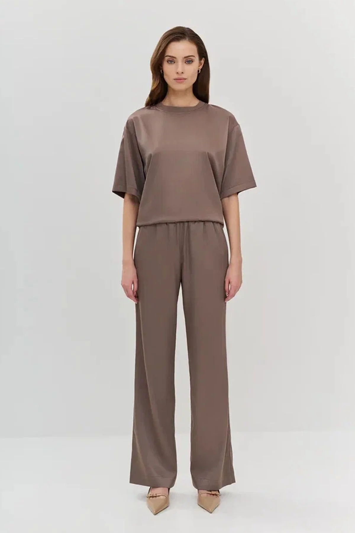 Прямые брюки в цвете какао с резинкой на талии, 44р