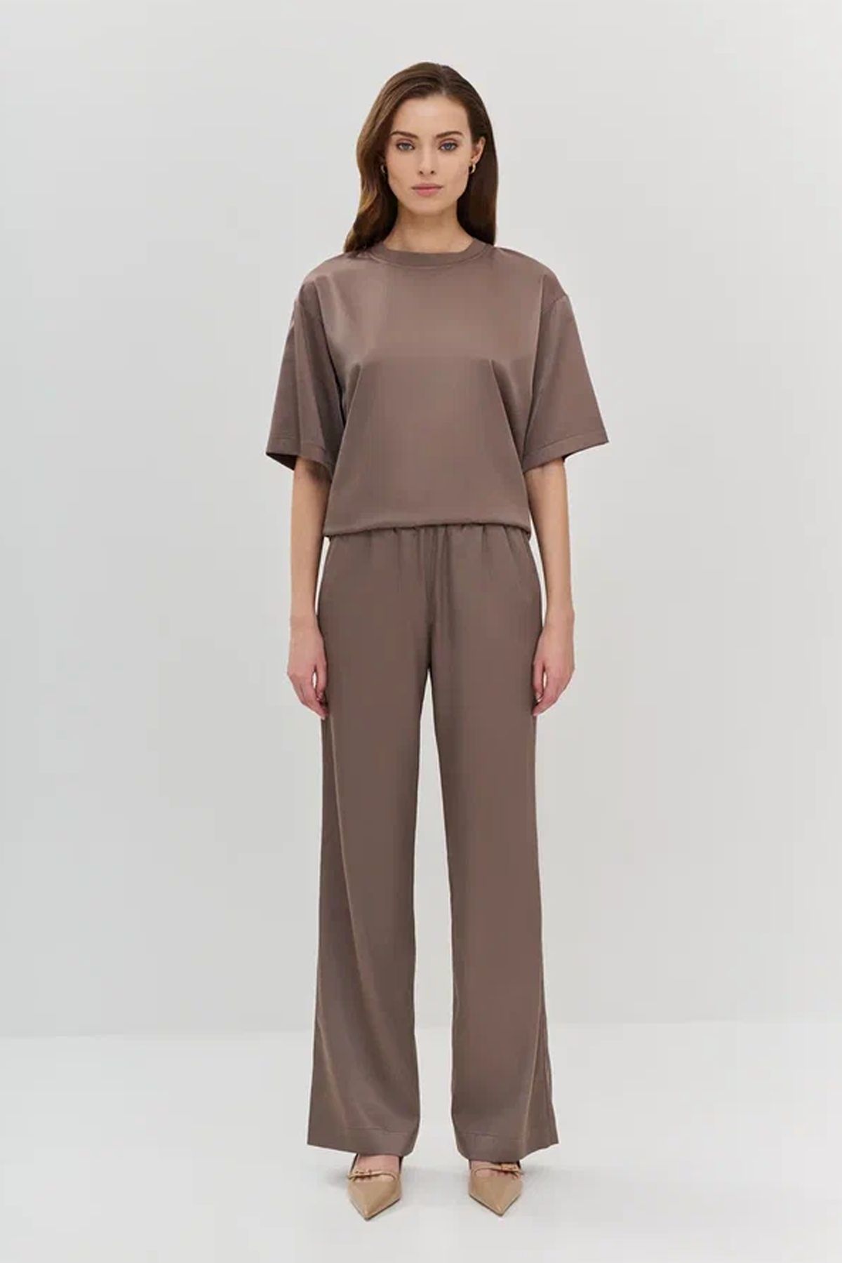 Прямые брюки в цвете какао с резинкой на талии, 48р