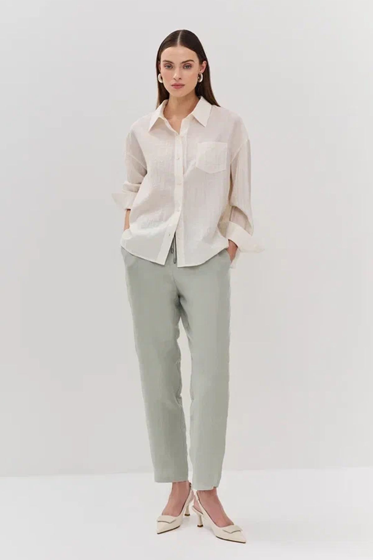 Прямые брюки светло-оливкового цвета со шнурком на талии, 46р