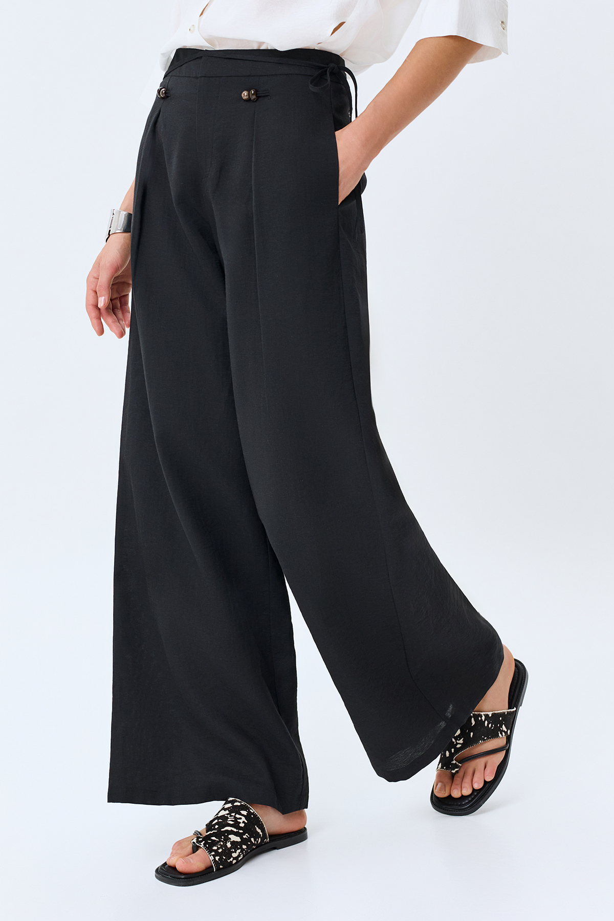 Широкие брюки с акцентным поясом, 44