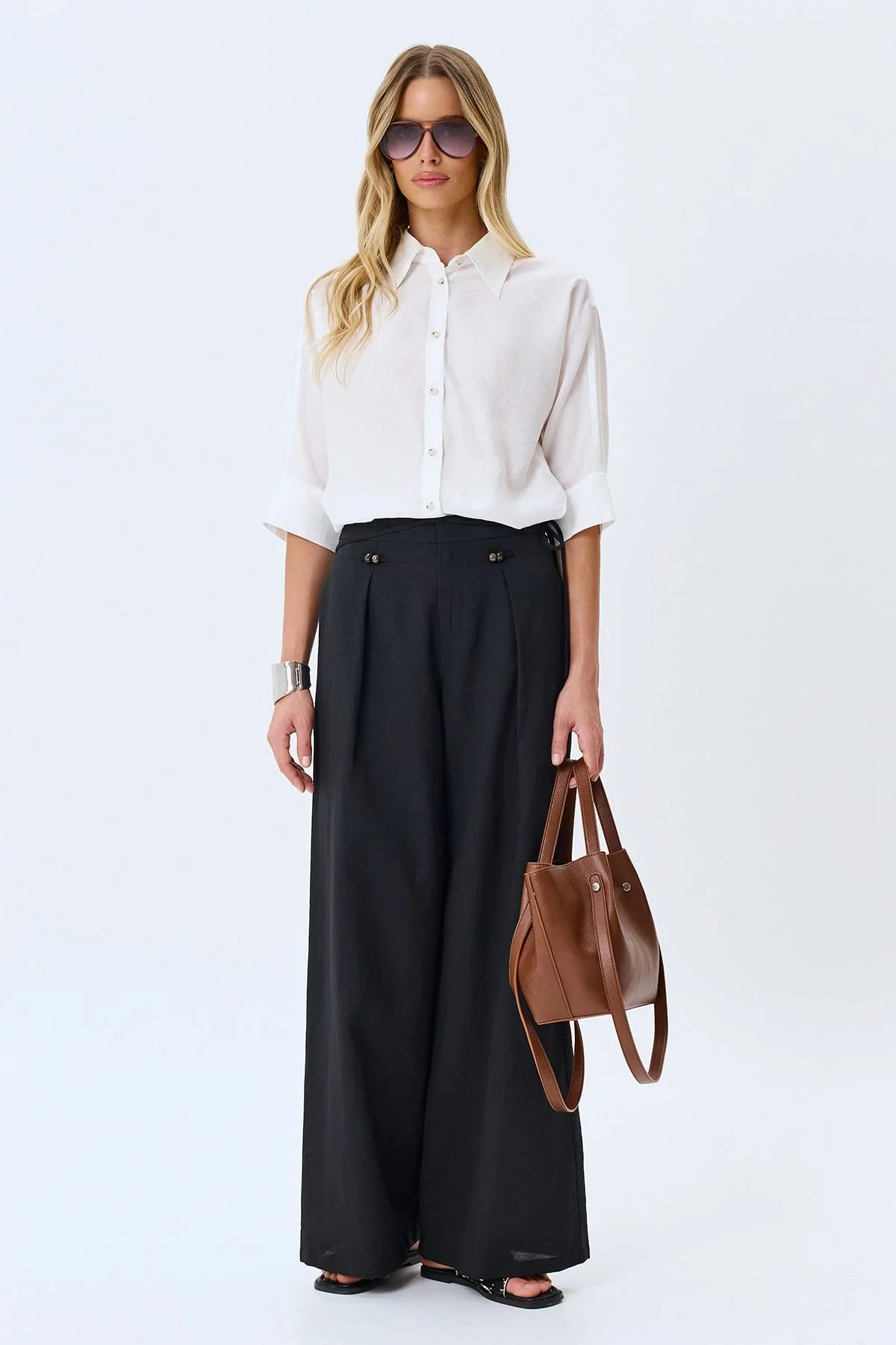Широкие брюки с акцентным поясом, 50