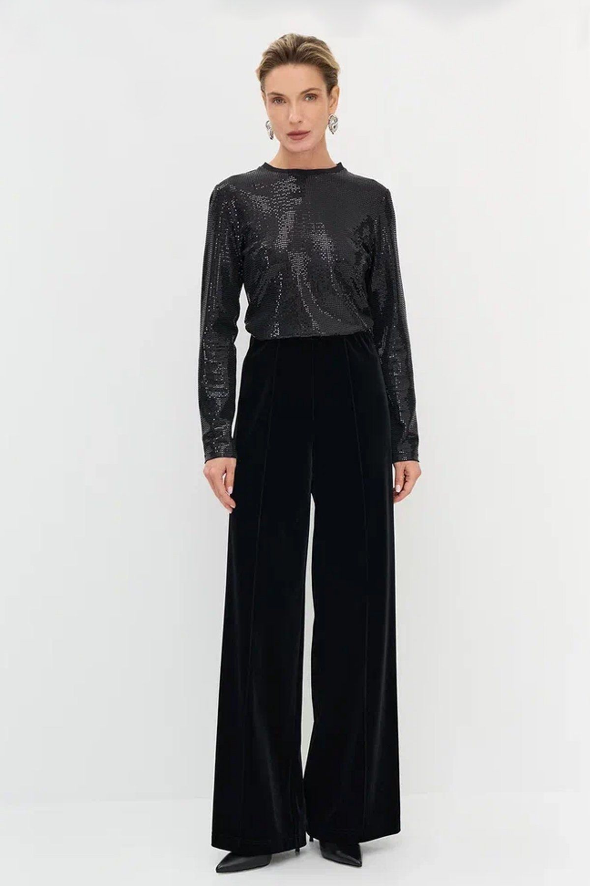 Свободные брюки из бархата со стрелками, 48р