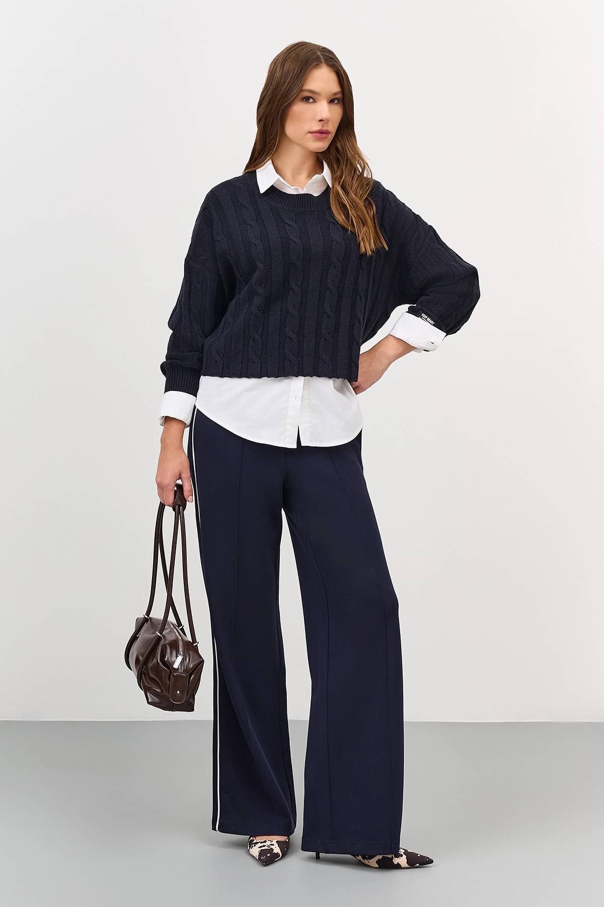 Трикотажные брюки с контрастным кантом, 48