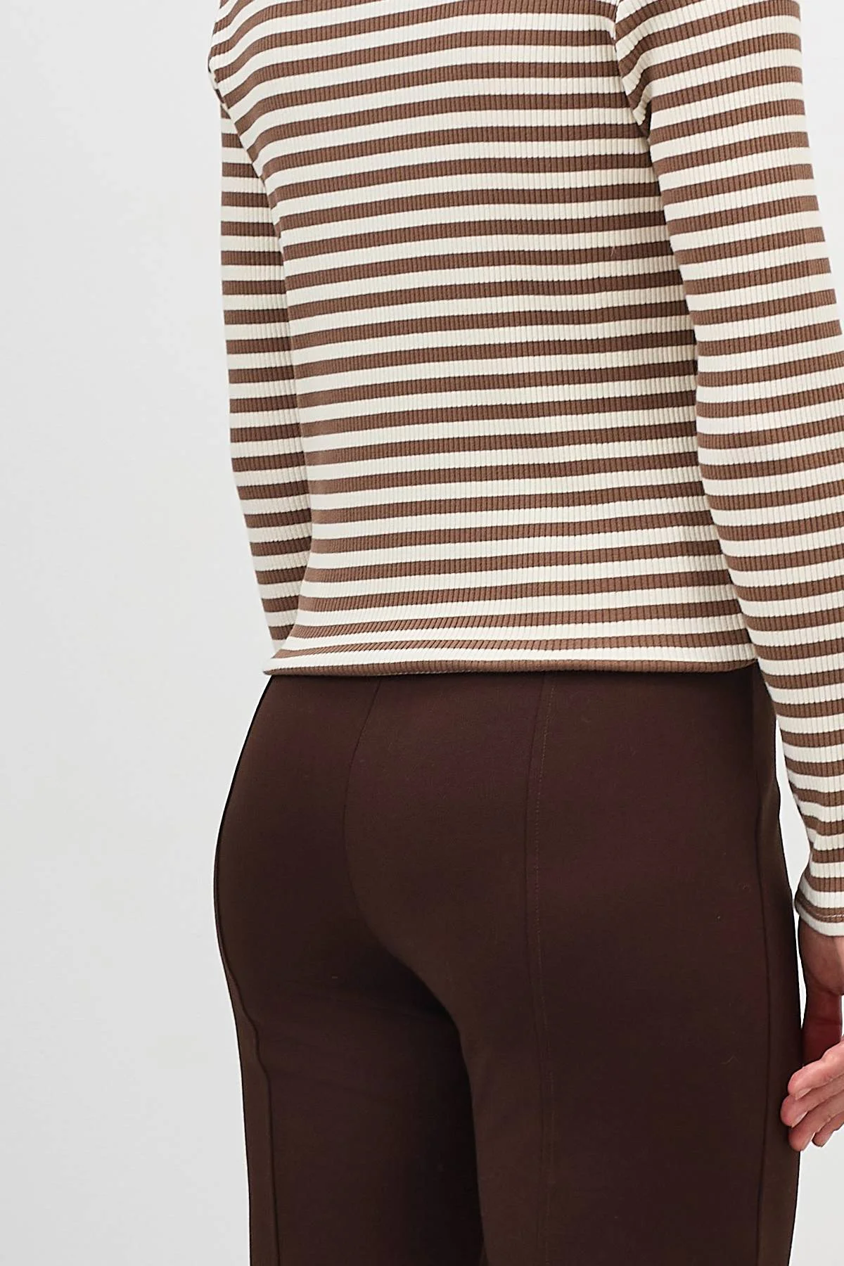 Брюки из трикотажной вискозы с акцентными рельефами. Облегающий силуэт. Резинка по линии талии. В составе спандекс.