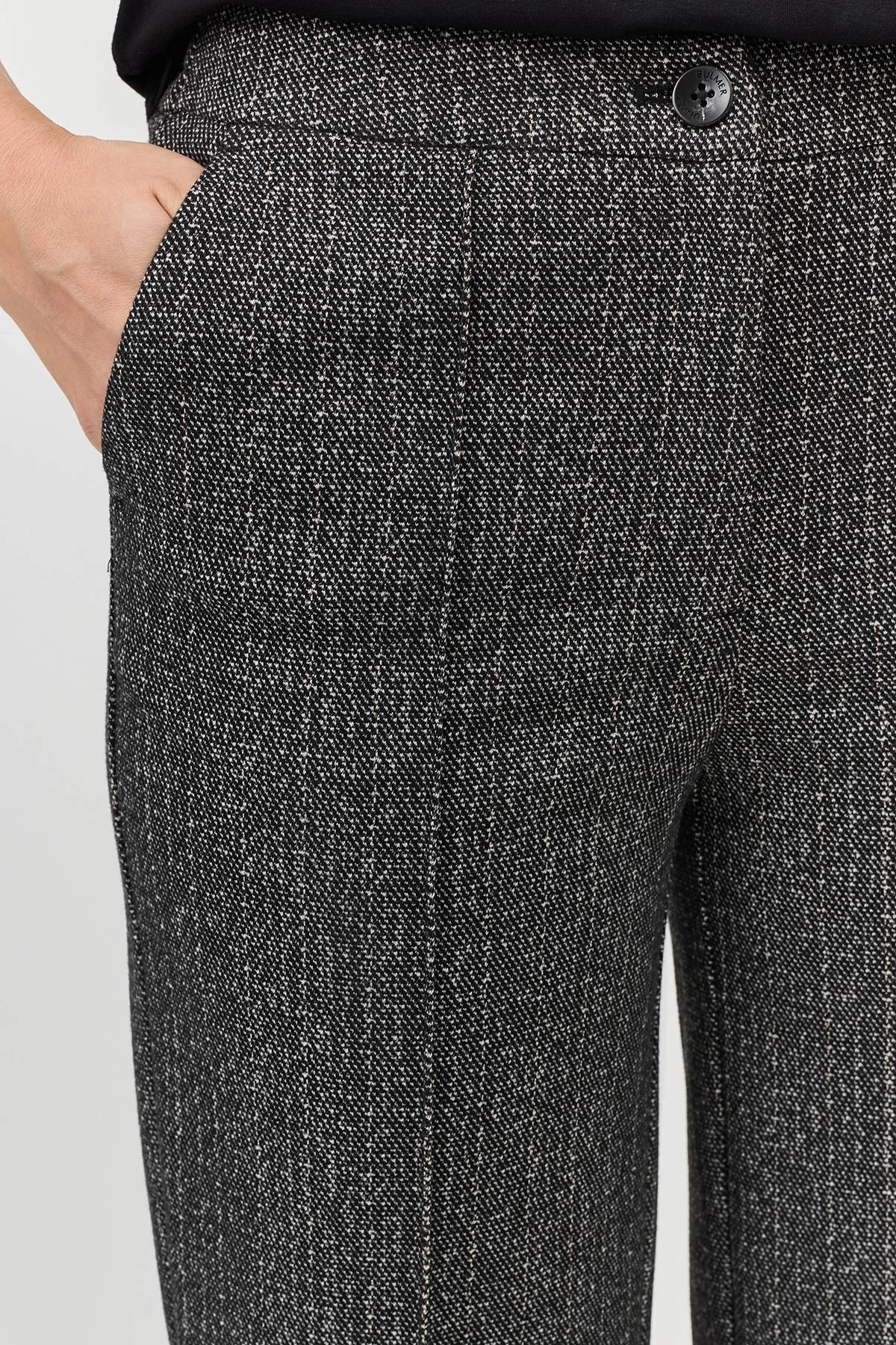 Широкие трикотажные брюки с застроченными стрелками. Свободный силуэт. Застежка на молнию и пуговицу. Резинка по линии талии сзади. Боковые карманы в швах. В составе вискоза и спандекс.