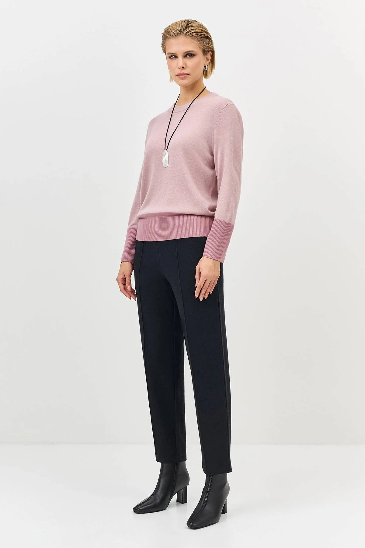 Утепленные трикотажные брюки с шерстью в составе. Прямой силуэт заужен к низу. Резинка по линии талии. Боковые карманы в швах. Дополнены застроченными стрелками. Деликатная вышивка в цвет.