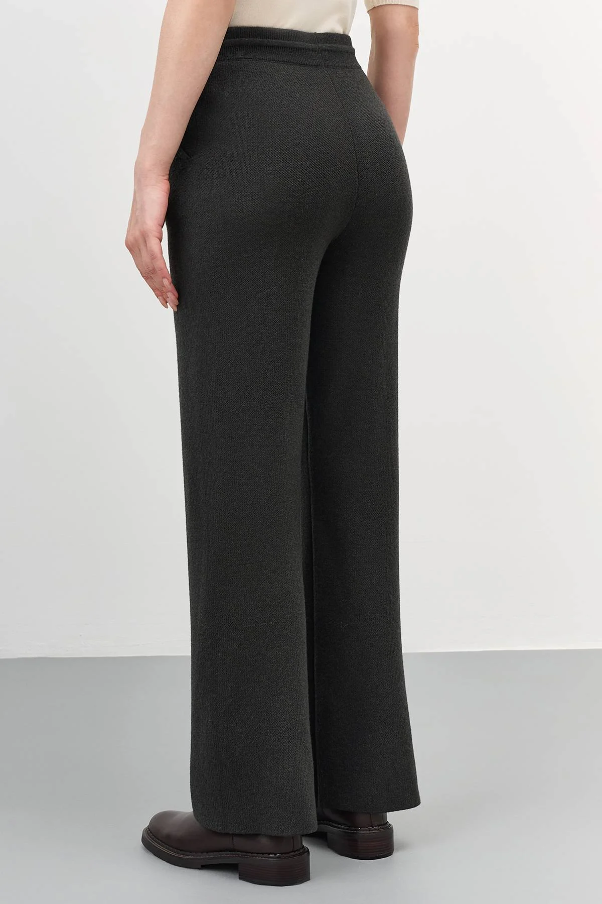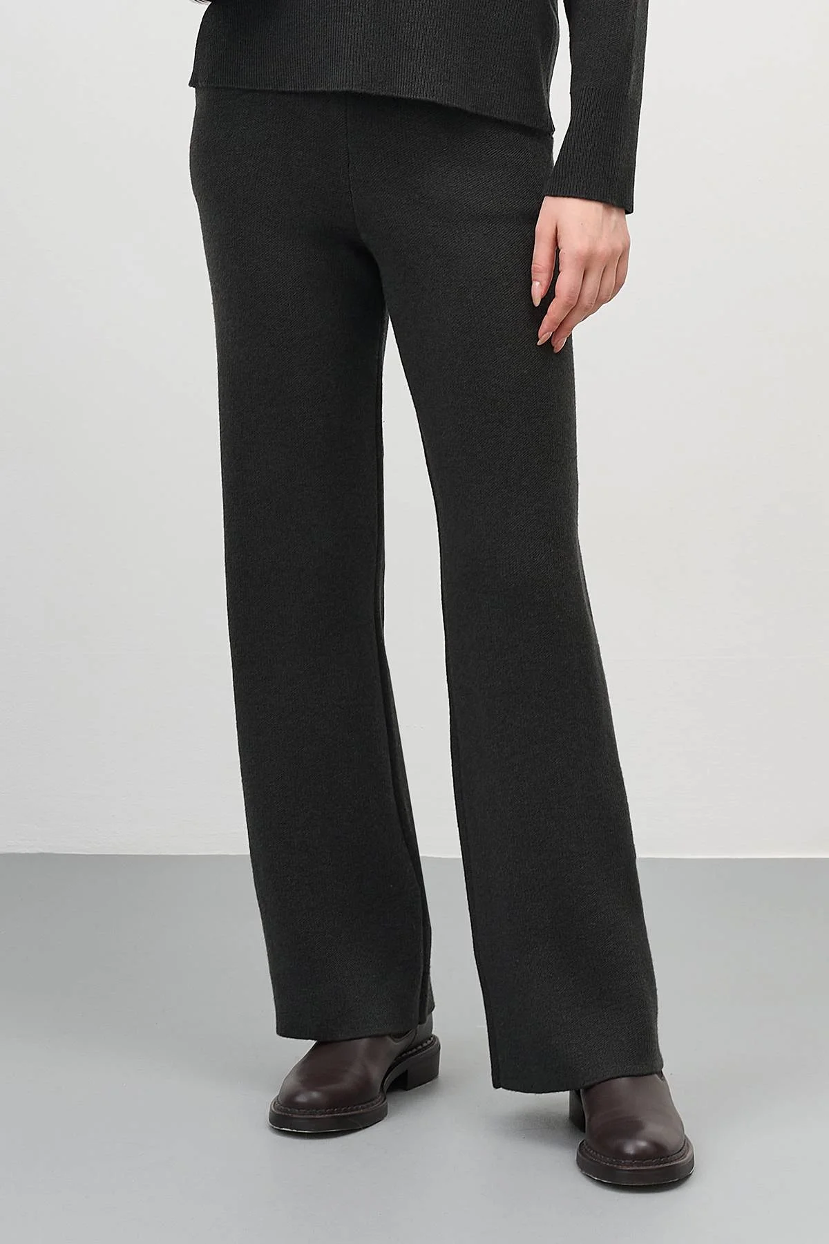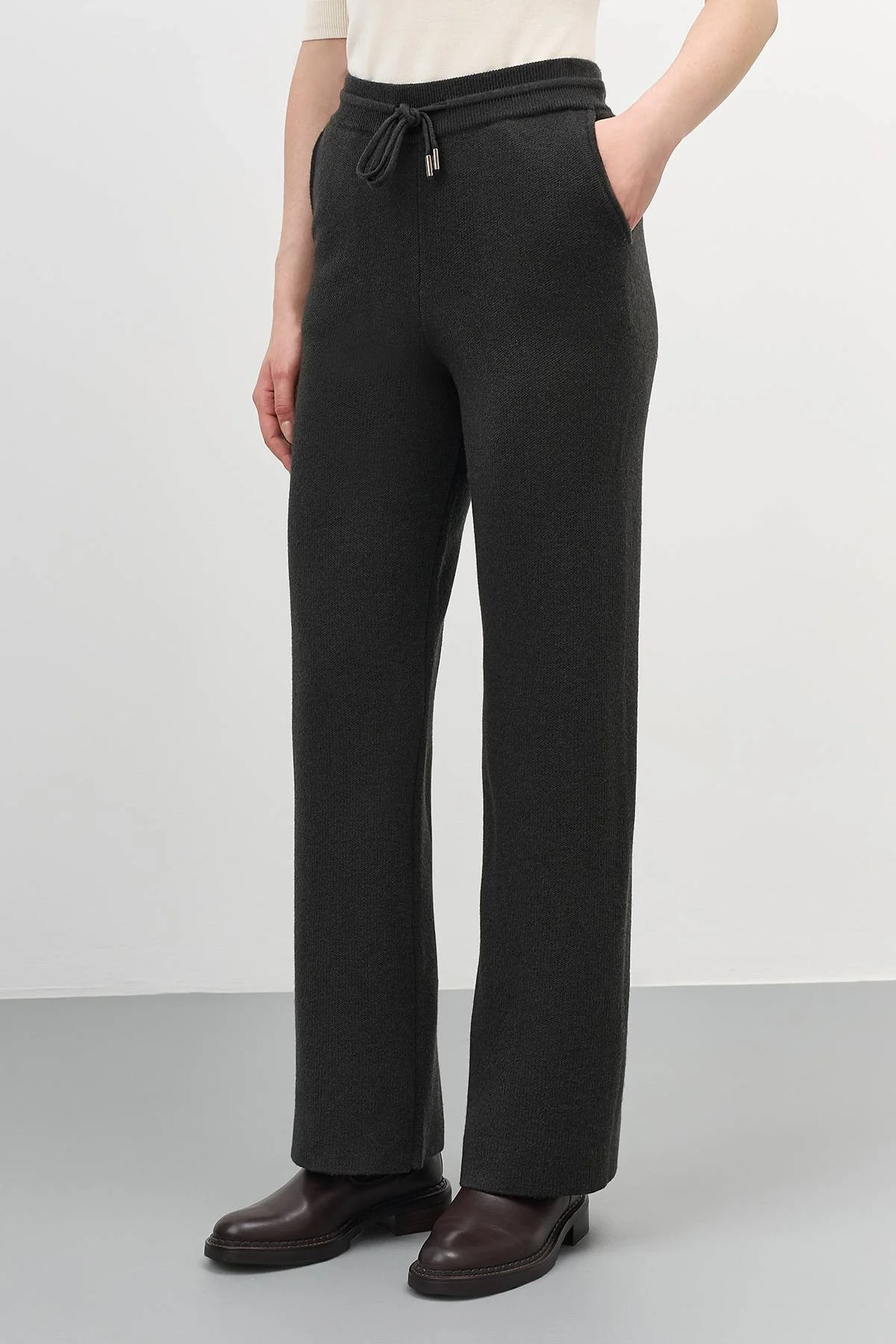 Свободные вязаные брюки с шерстью в составе прямого силуэта. Резинка и шнурок по линии талии. Боковые карманы в швах. Комплект с арт. 60907.