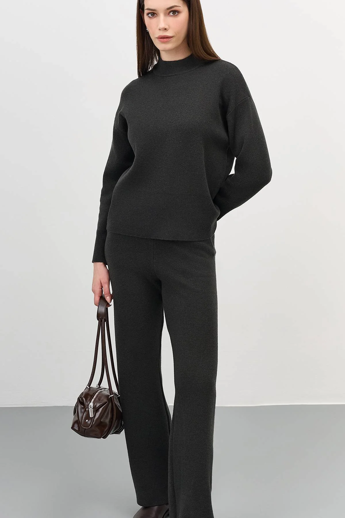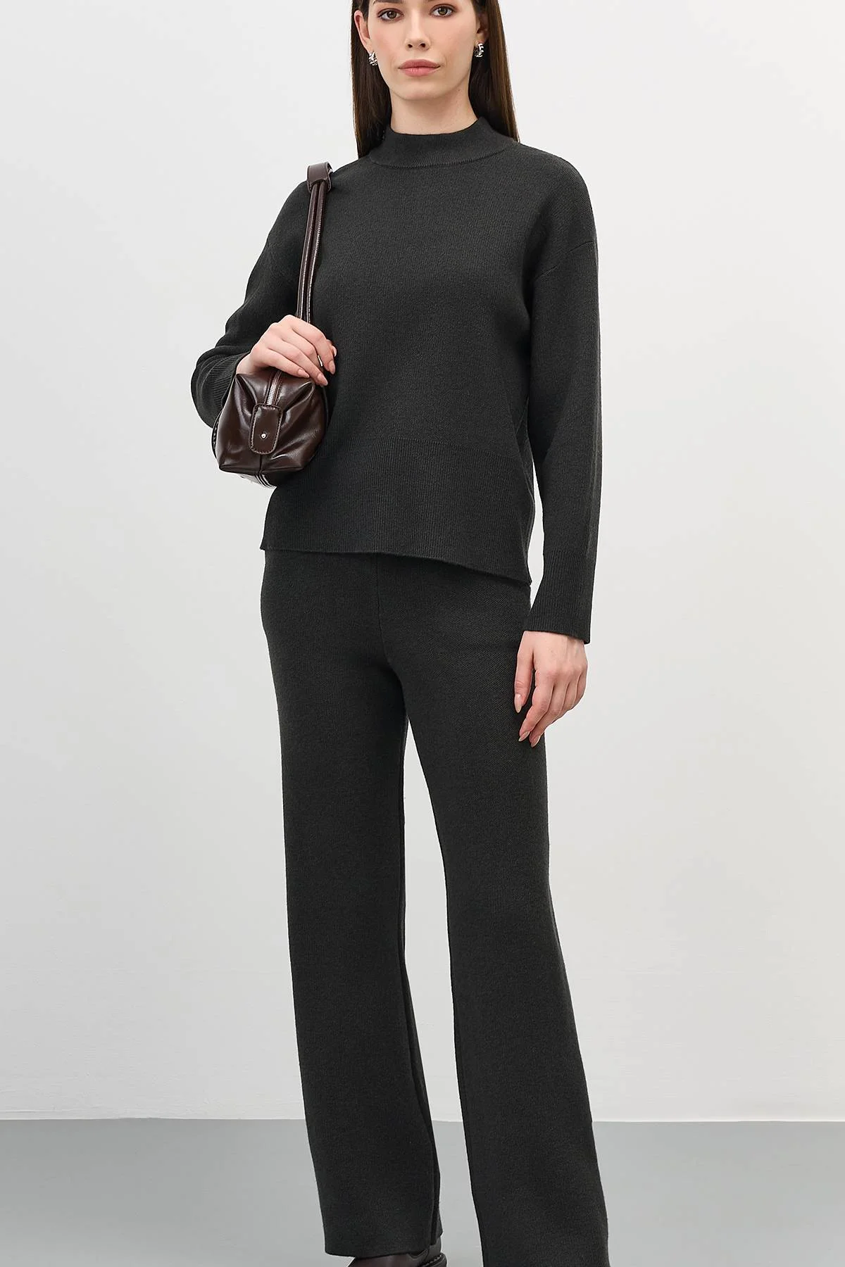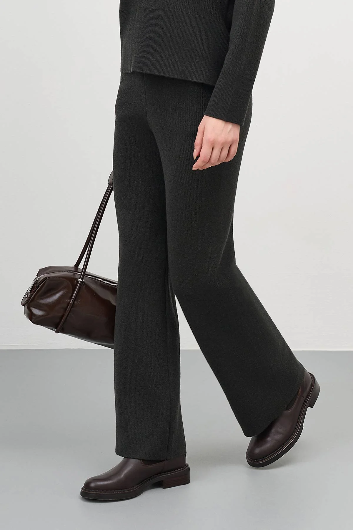 Свободные вязаные брюки с шерстью в составе прямого силуэта. Резинка и шнурок по линии талии. Боковые карманы в швах. Комплект с арт. 60907.