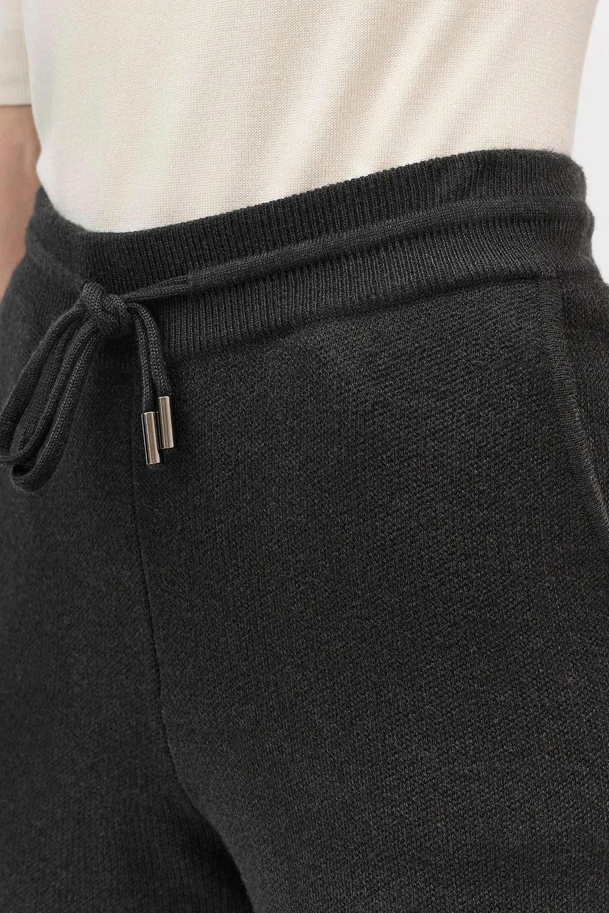 Свободные вязаные брюки с шерстью в составе прямого силуэта. Резинка и шнурок по линии талии. Боковые карманы в швах. Комплект с арт. 60907.