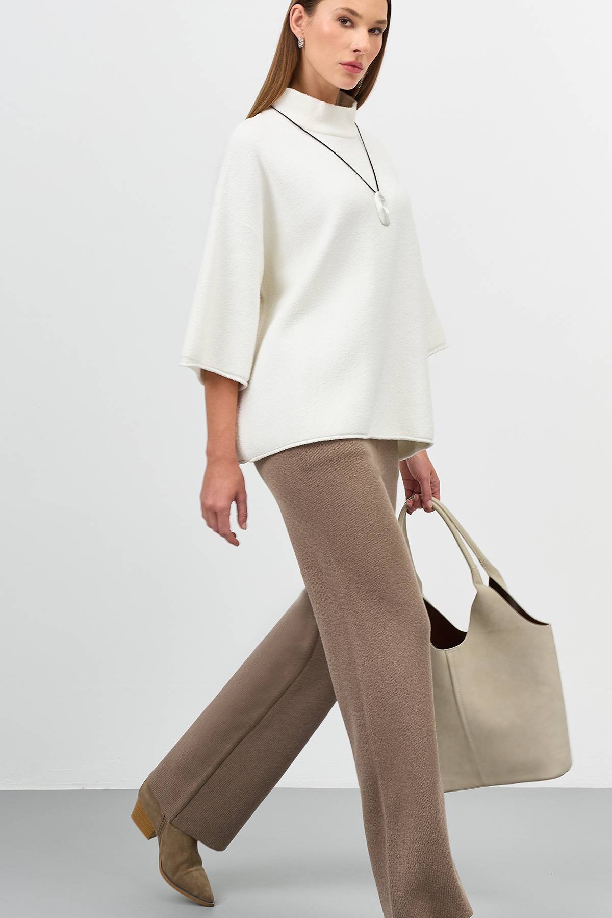Коричневые вязаные брюки с шерстью, 46