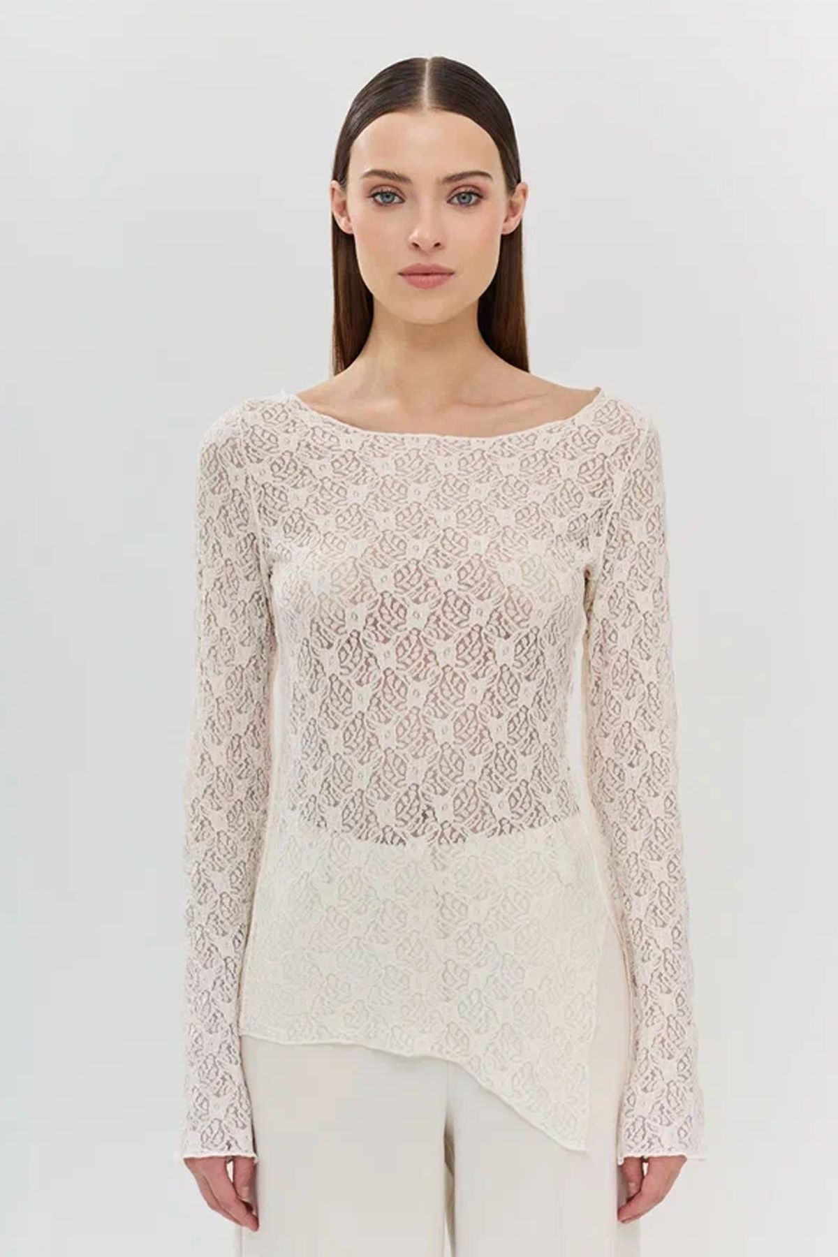Асимметричный кружевной лонгслив приталенного силуэта, 46р