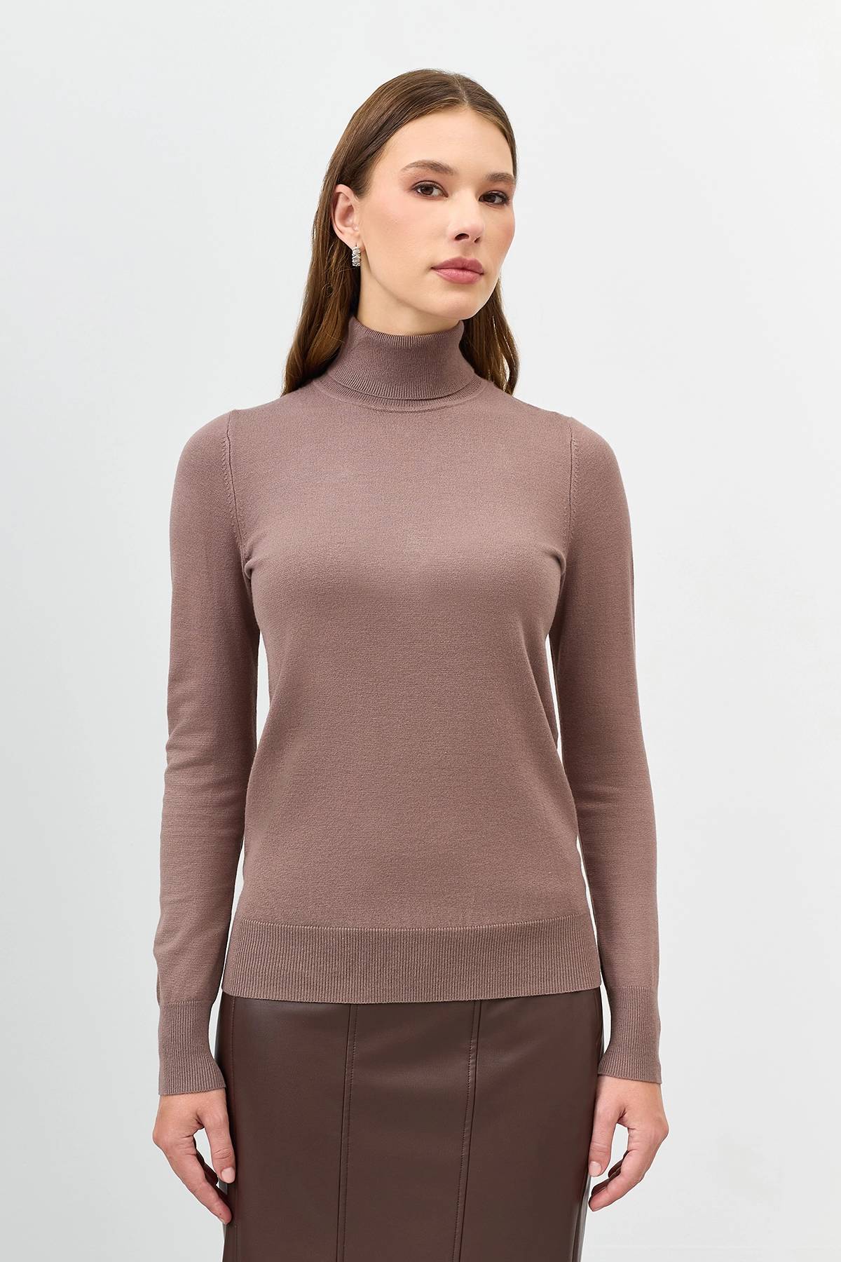 Базовая водолазка из смесовой вискозы в цвете кофе, 48