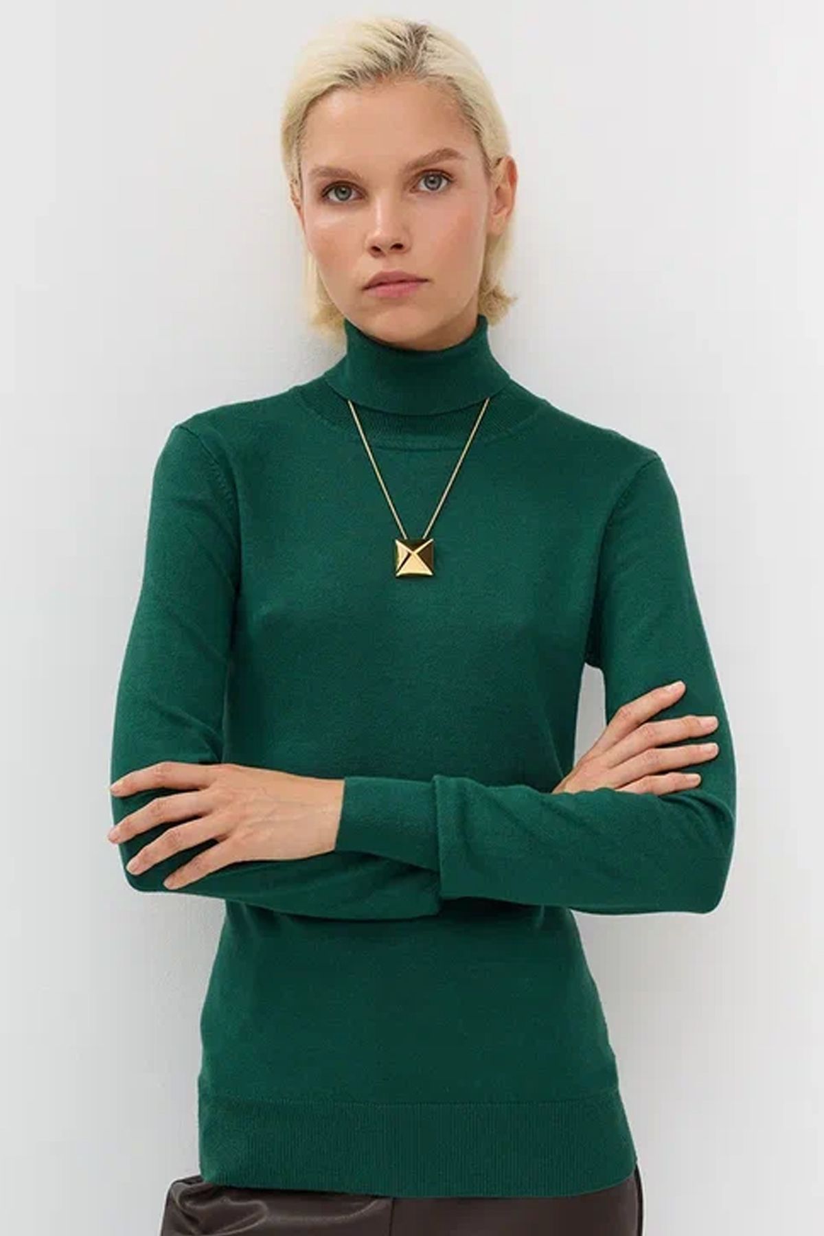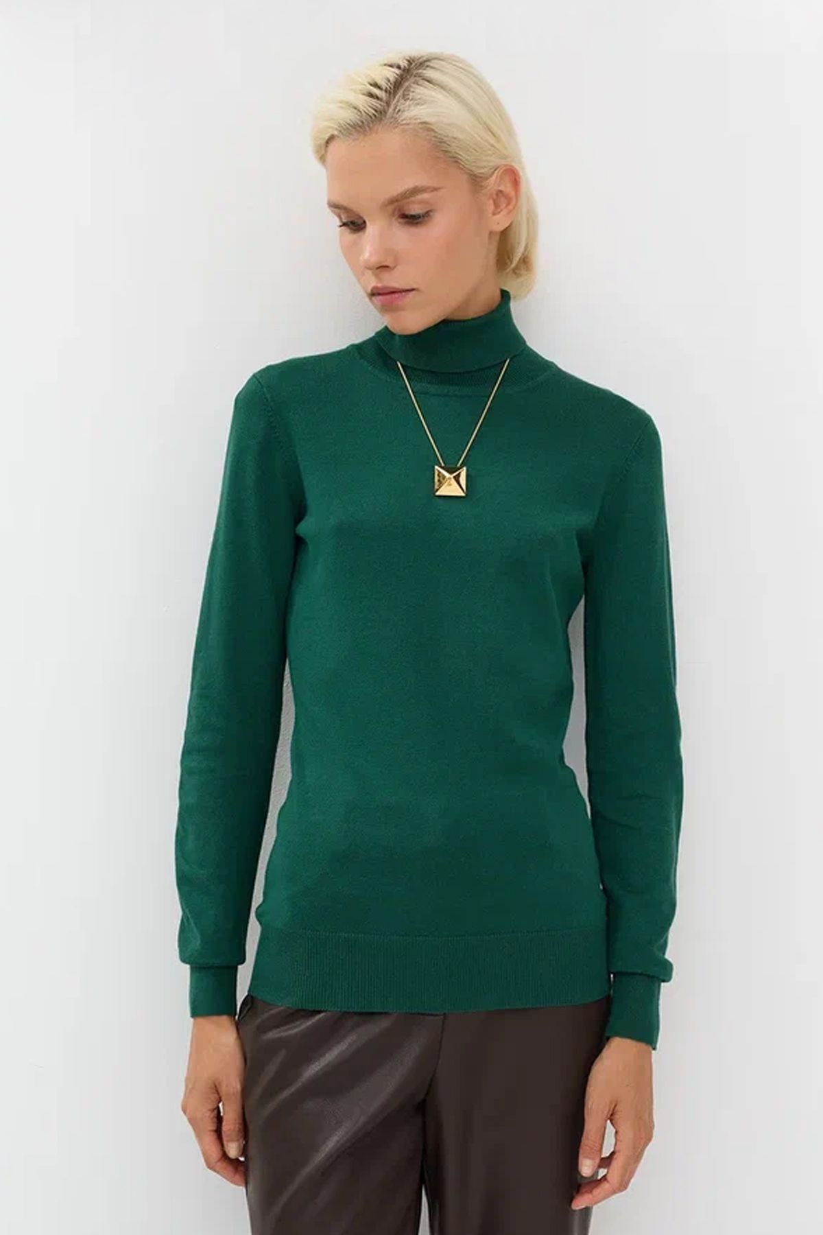 Базовый джемпер-водолазка изумрудного цвета полуприлегающего кроя, 44р
