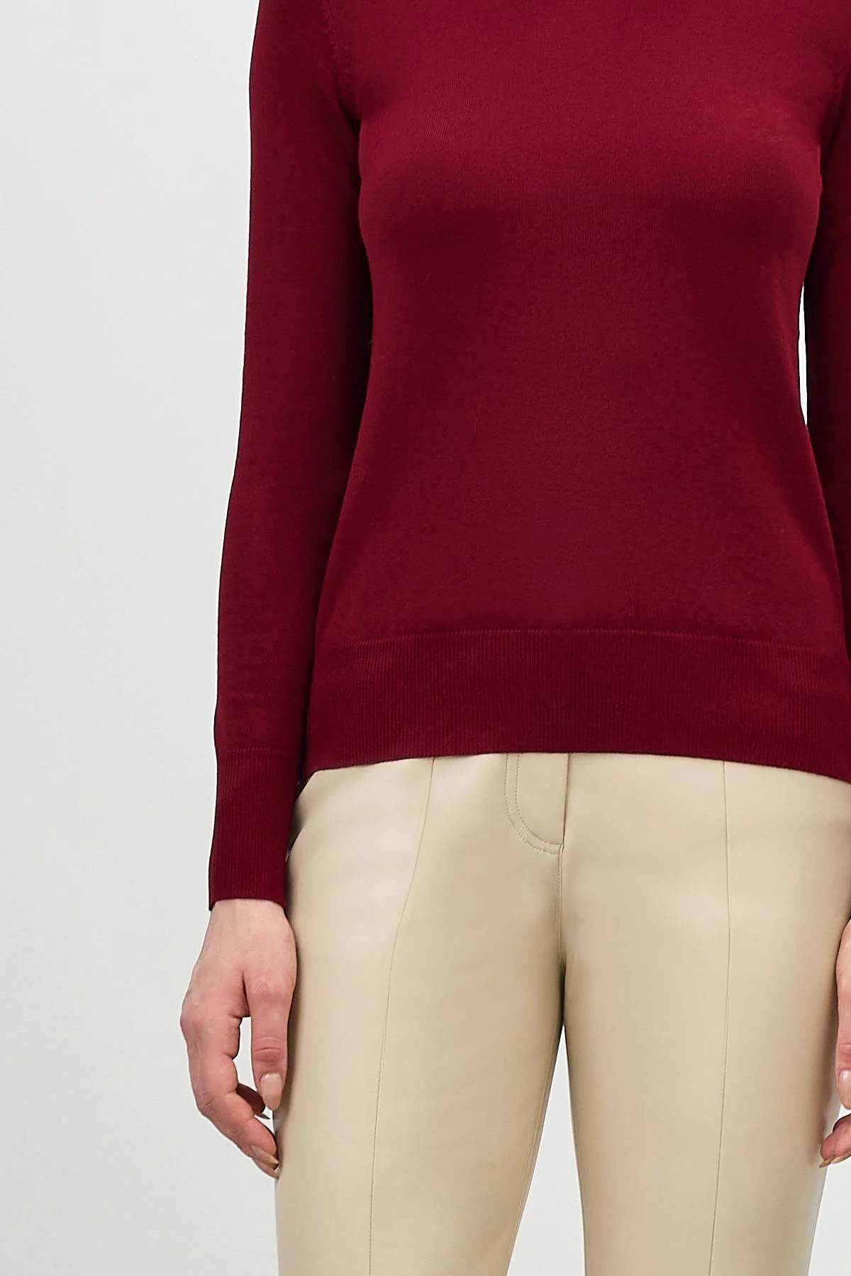 Базовый джемпер из вискозной пряжи с добавлением нейлона. Прямой силуэт. Воротник небольшая стойка. Втачные рукава. Манжеты по низу рукавов и изделия.