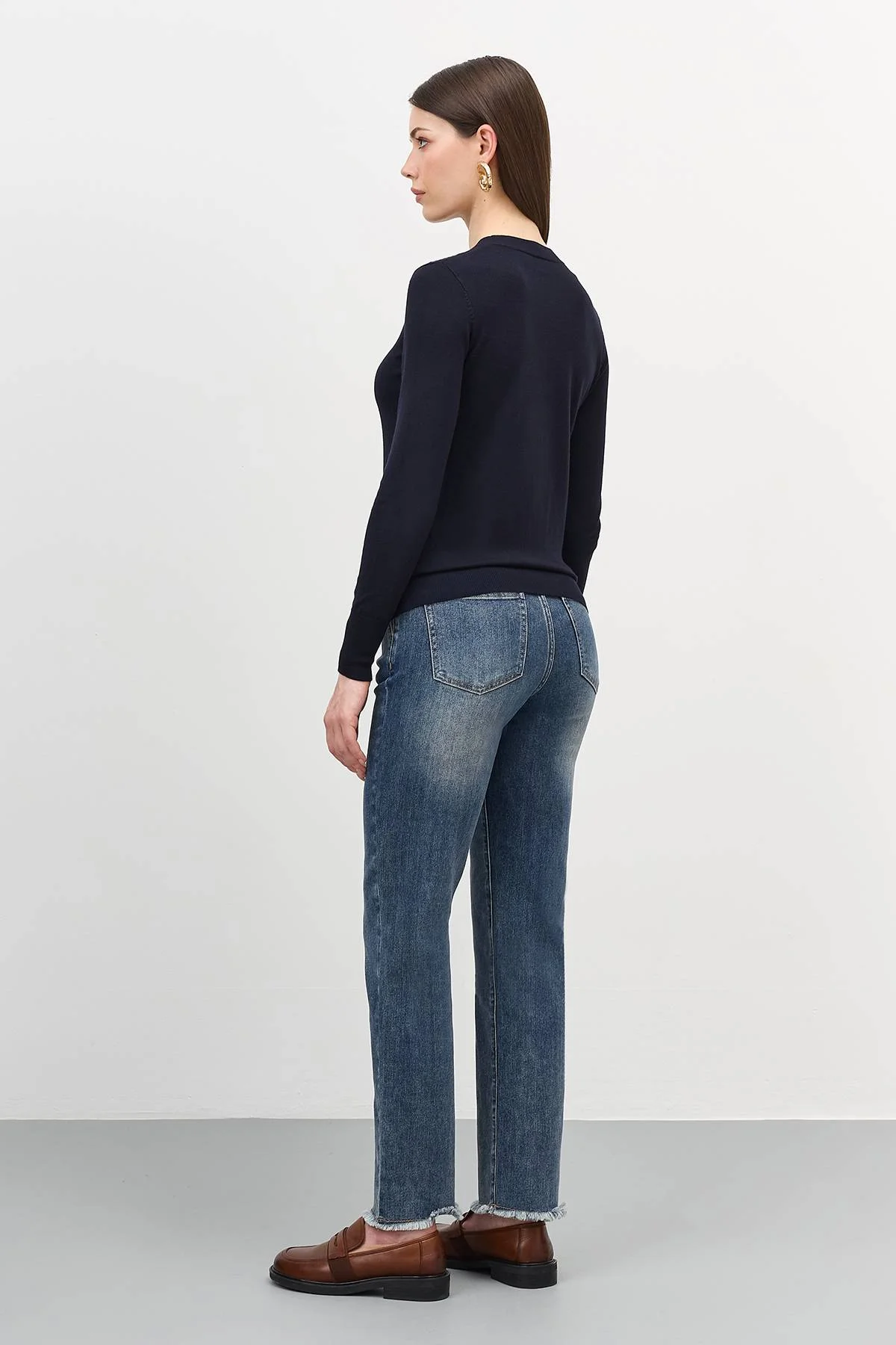 Базовый джемпер из вискозной пряжи с добавлением нейлона. Прямой силуэт. Воротник небольшая стойка. Втачные рукава. Манжеты по низу рукавов и изделия.