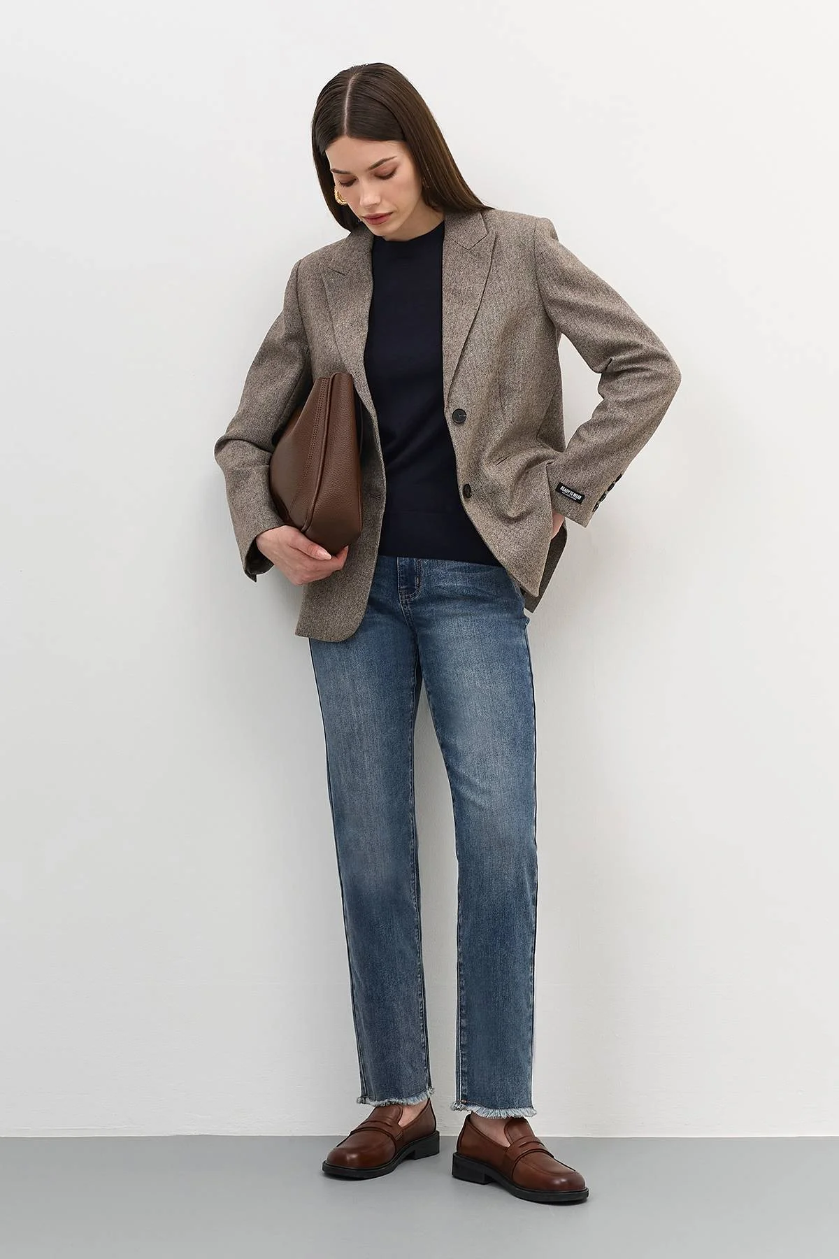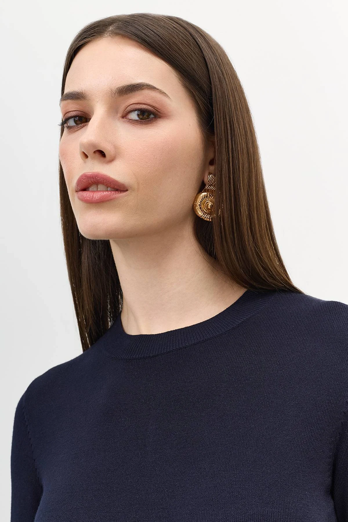 Базовый джемпер из вискозной пряжи с добавлением нейлона. Прямой силуэт. Воротник небольшая стойка. Втачные рукава. Манжеты по низу рукавов и изделия.
