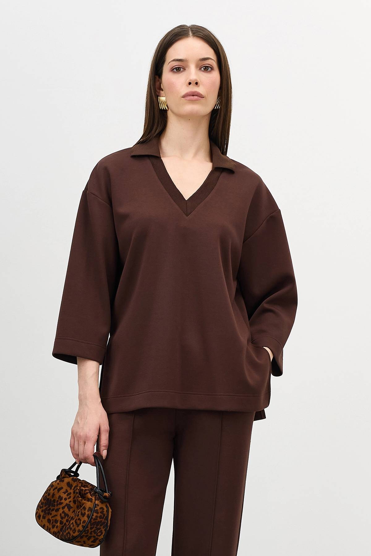 Джемпер из вискозы с воротником-поло, 48