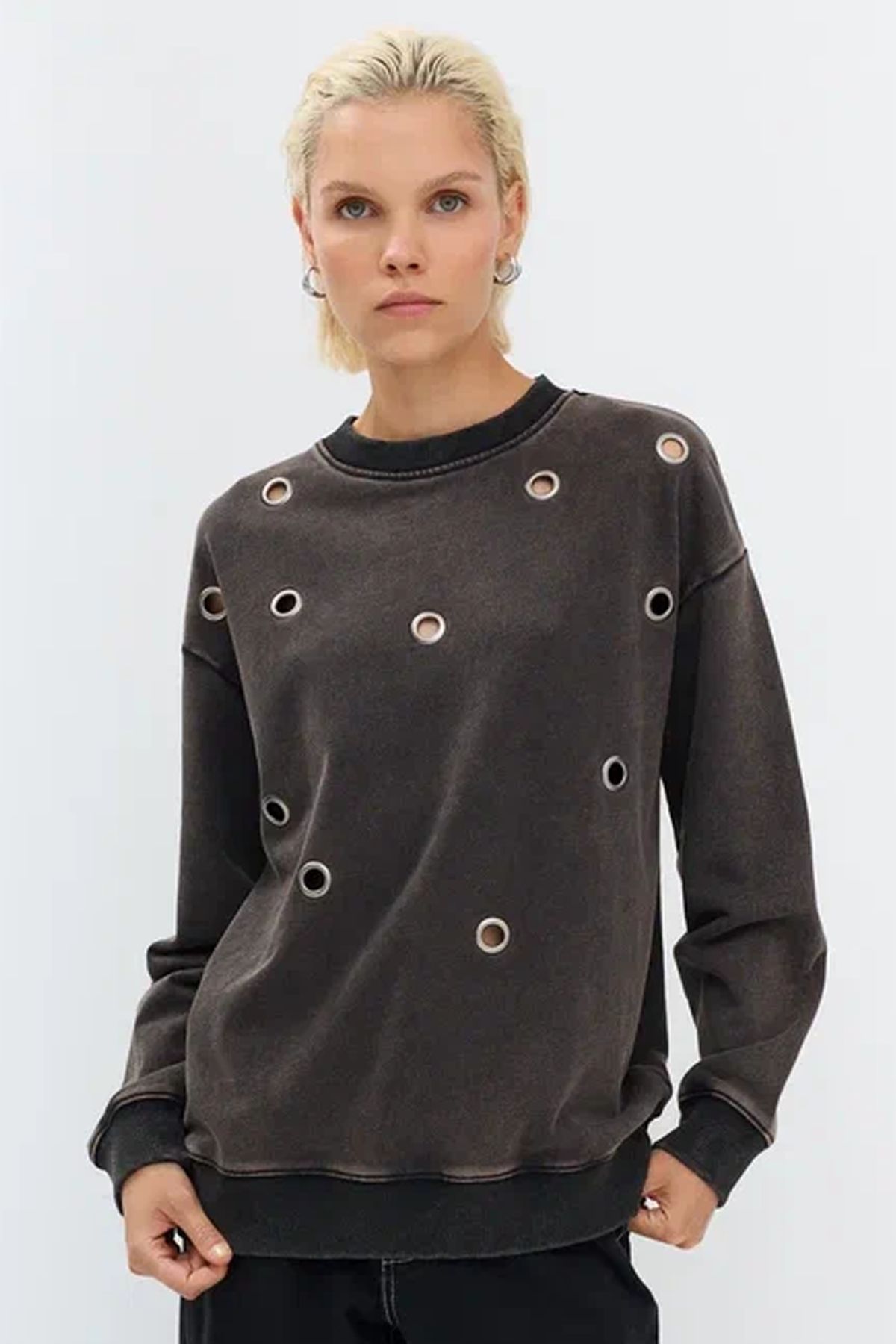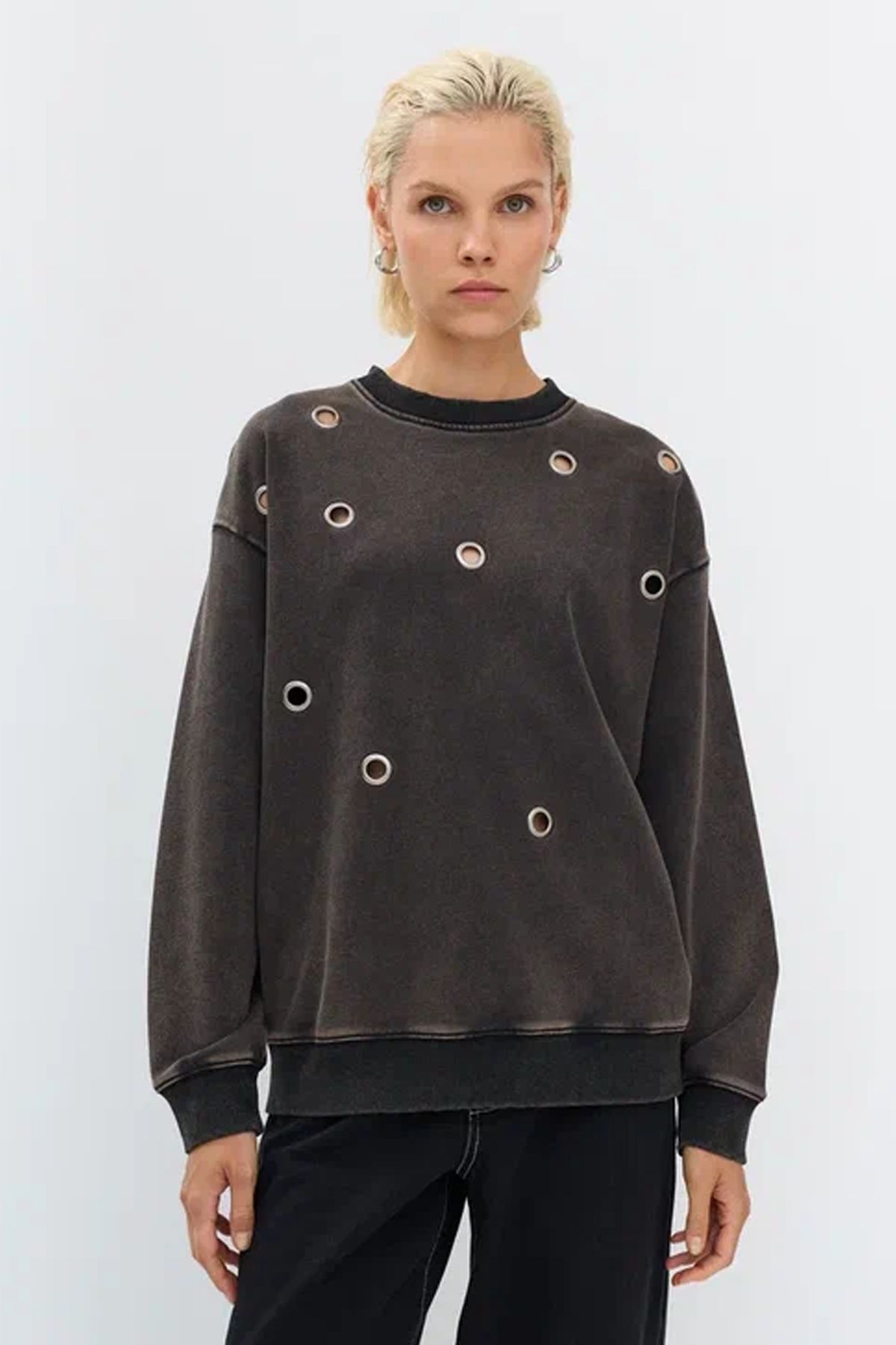 Джемпер с декоративными люверсами и эффектом варки, 42р