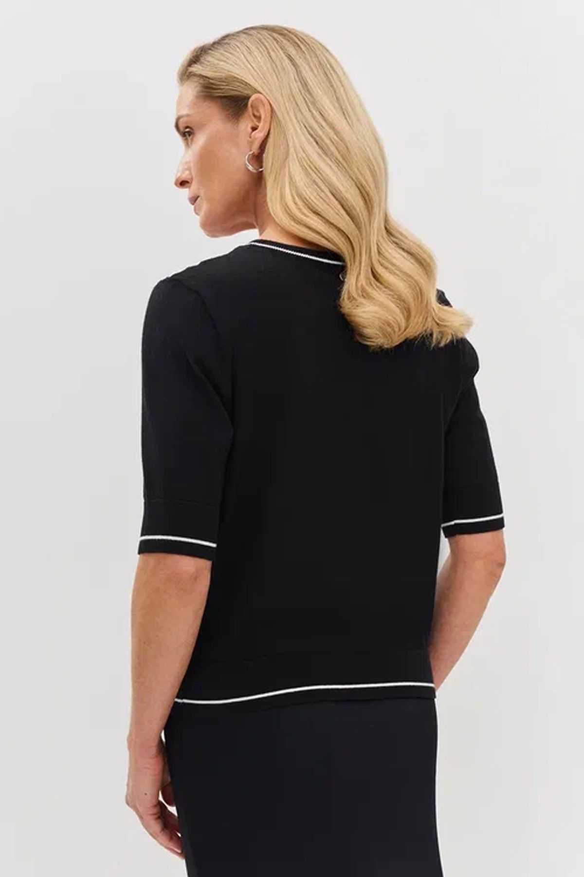 Джемпер с монохромным флоральным принтом на полочке. Укороченный рукав с контрастной полосой - комфортный вариант в весенне-летний период. Прямой силуэт подойдёт практически для любого типа фигуры. Круглый вырез горловины комфортно ощущается при ношении. Круглый глянцевый декор на спинке в области горловины - лаконичный стильный акцент. Данную модель джемпера можно комбинировать с различными вариантами низа (брюки, юбки) для разнообразных образов.