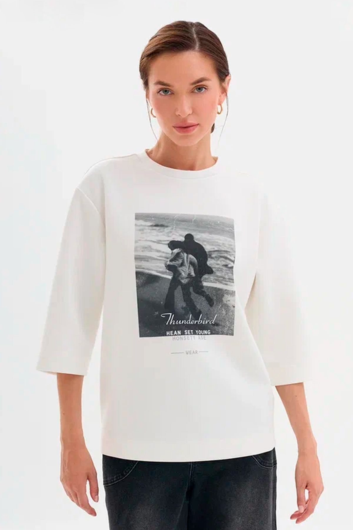 Джемпер с фото-принтом и рукавом 3/4, 48р