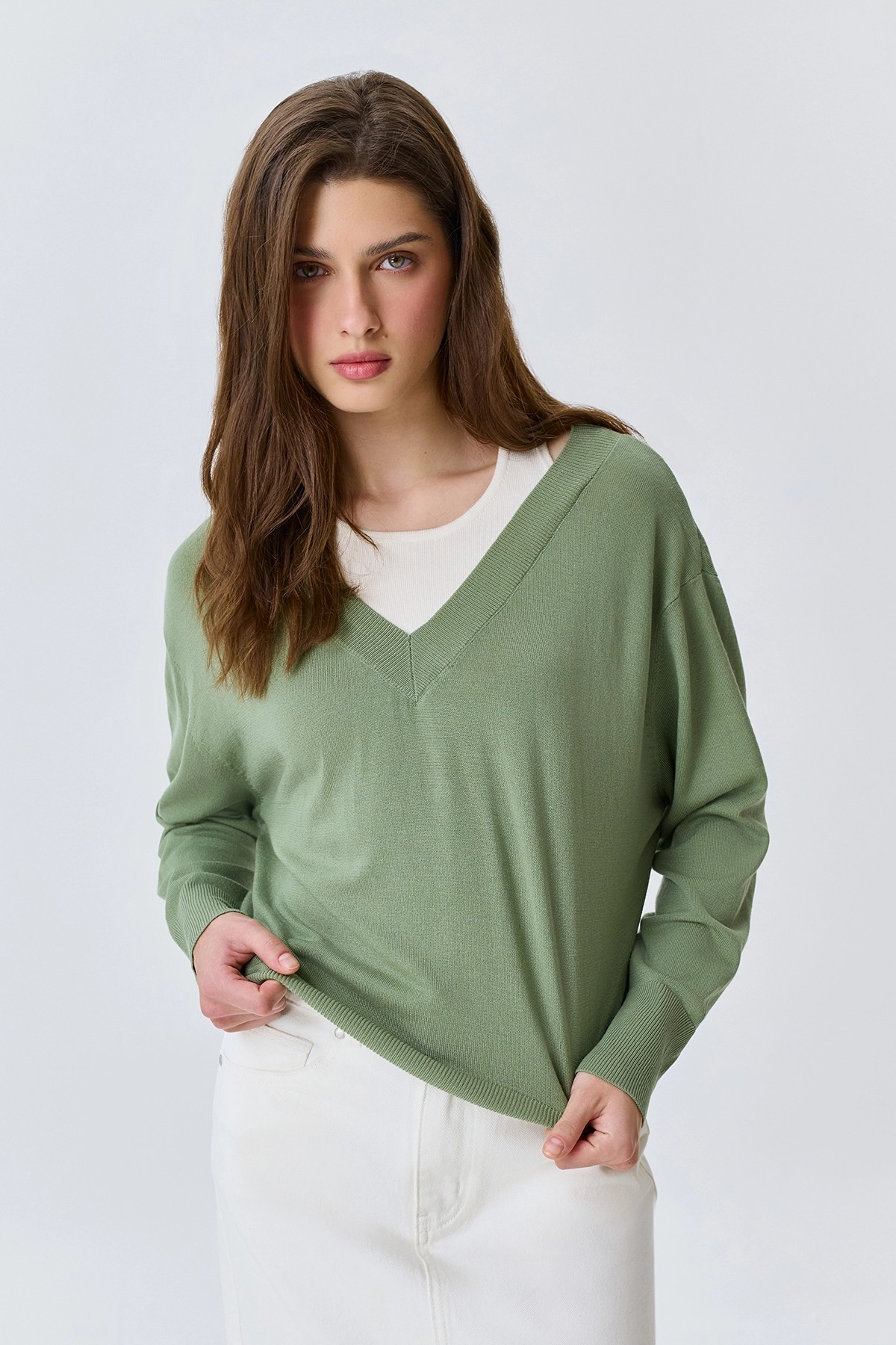 Джемпер с имитацией многослойности, 46