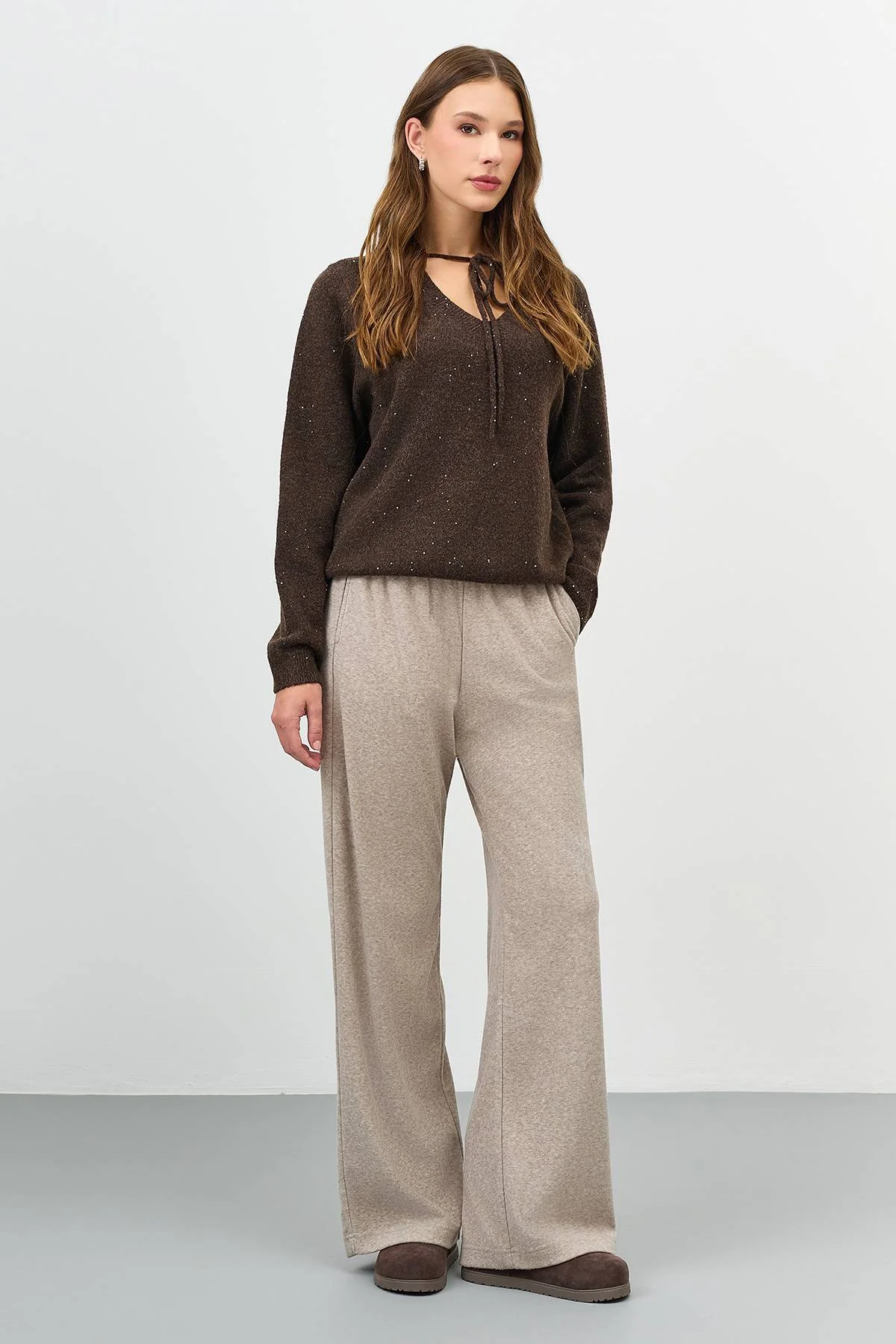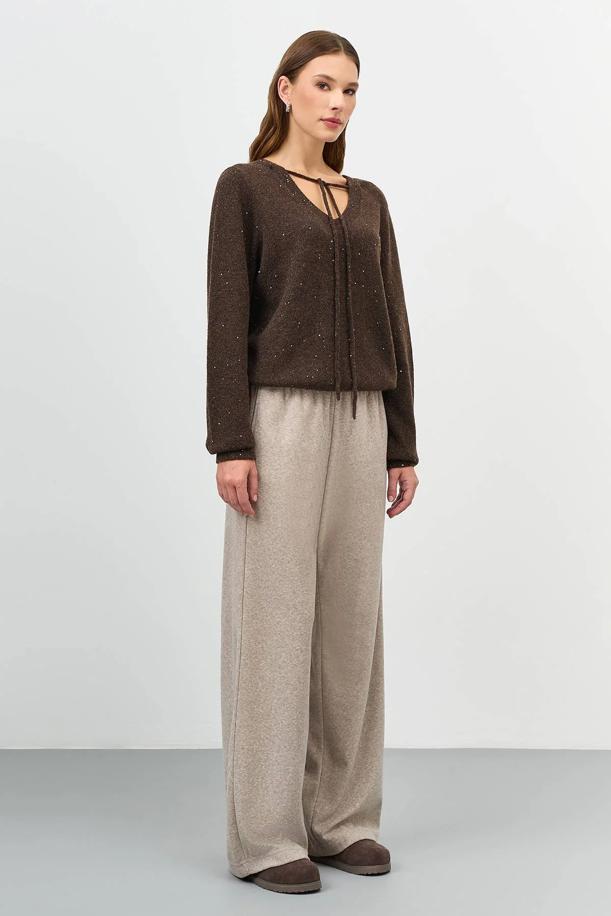 Коричневый джемпер с мерцающим люрексом, 44