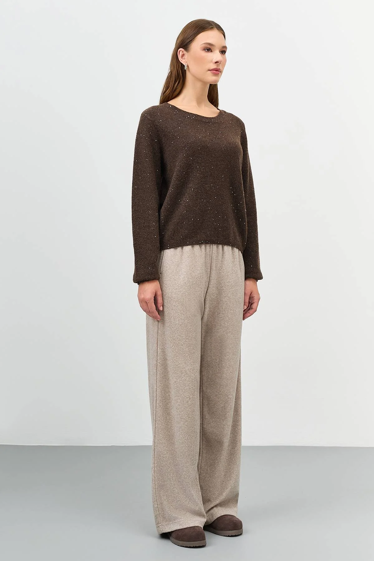 Коричневый джемпер с мерцающим люрексом, 48
