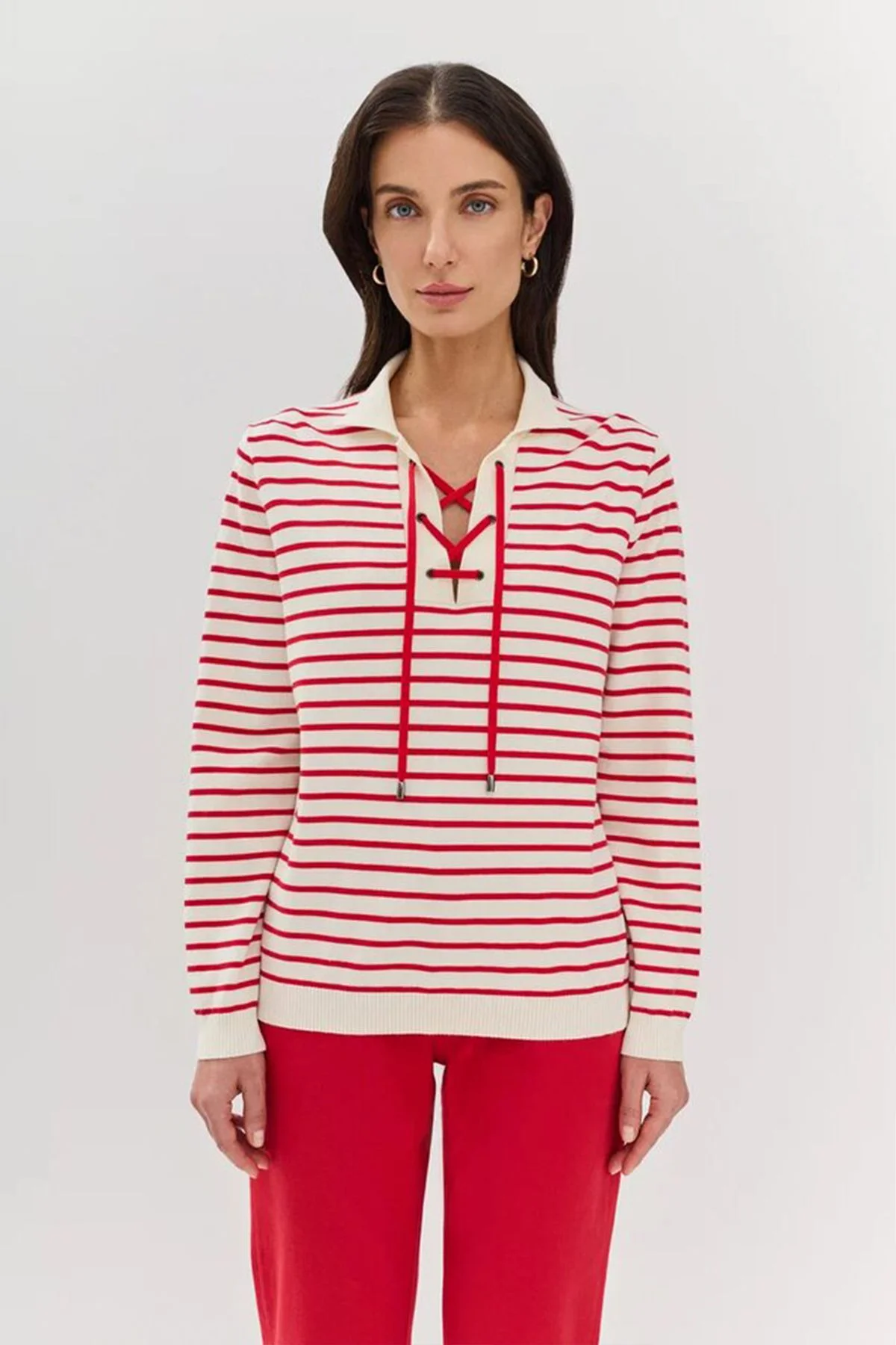 Джемпер в полоску с яркой шнуровкой по горловине, 48р