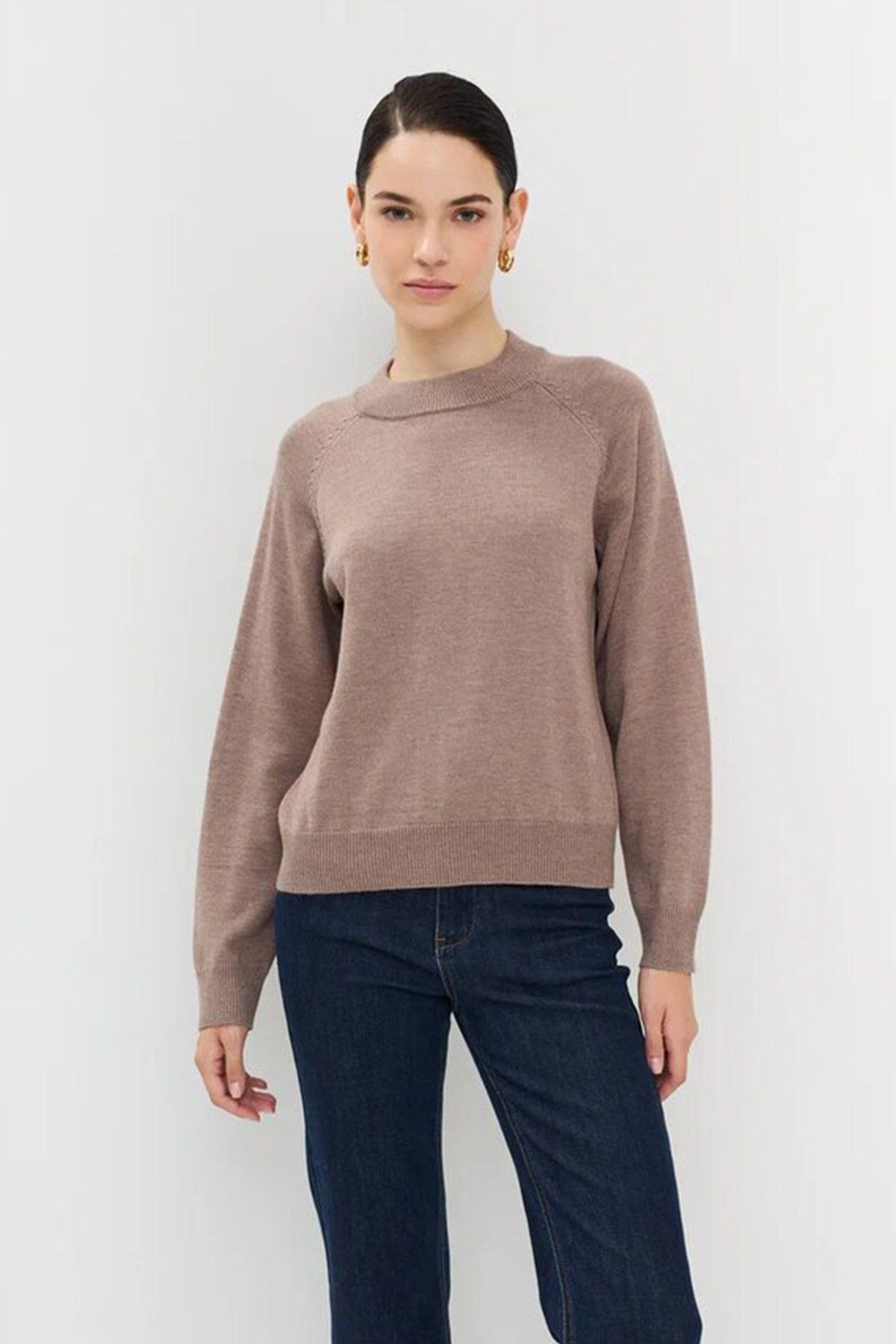 Трикотажный джемпер с рукавом реглан в цвете кофе, 48р
