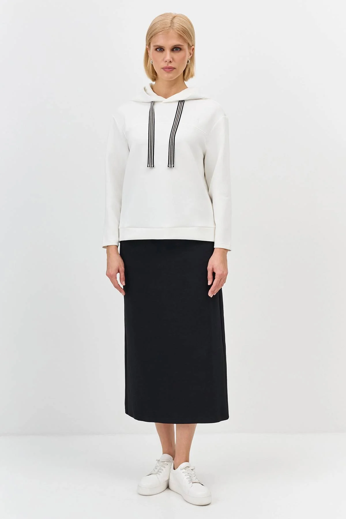 Свободный силуэт со спущенными плечами и капюшоном создает расслабленный уличный образ. Контрастная лента по краю капюшона и деликатная вышивка добавляют модели стильные акценты. Мягкий смесовый материал обеспечивает комфорт и удобство в носке.