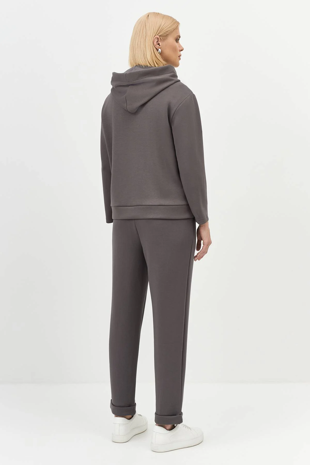 Свободный силуэт со спущенными плечами и капюшоном создает расслабленный уличный образ. Контрастная лента по краю капюшона и деликатная вышивка добавляют модели стильные акценты. Мягкий смесовый материал обеспечивает комфорт и удобство в носке.