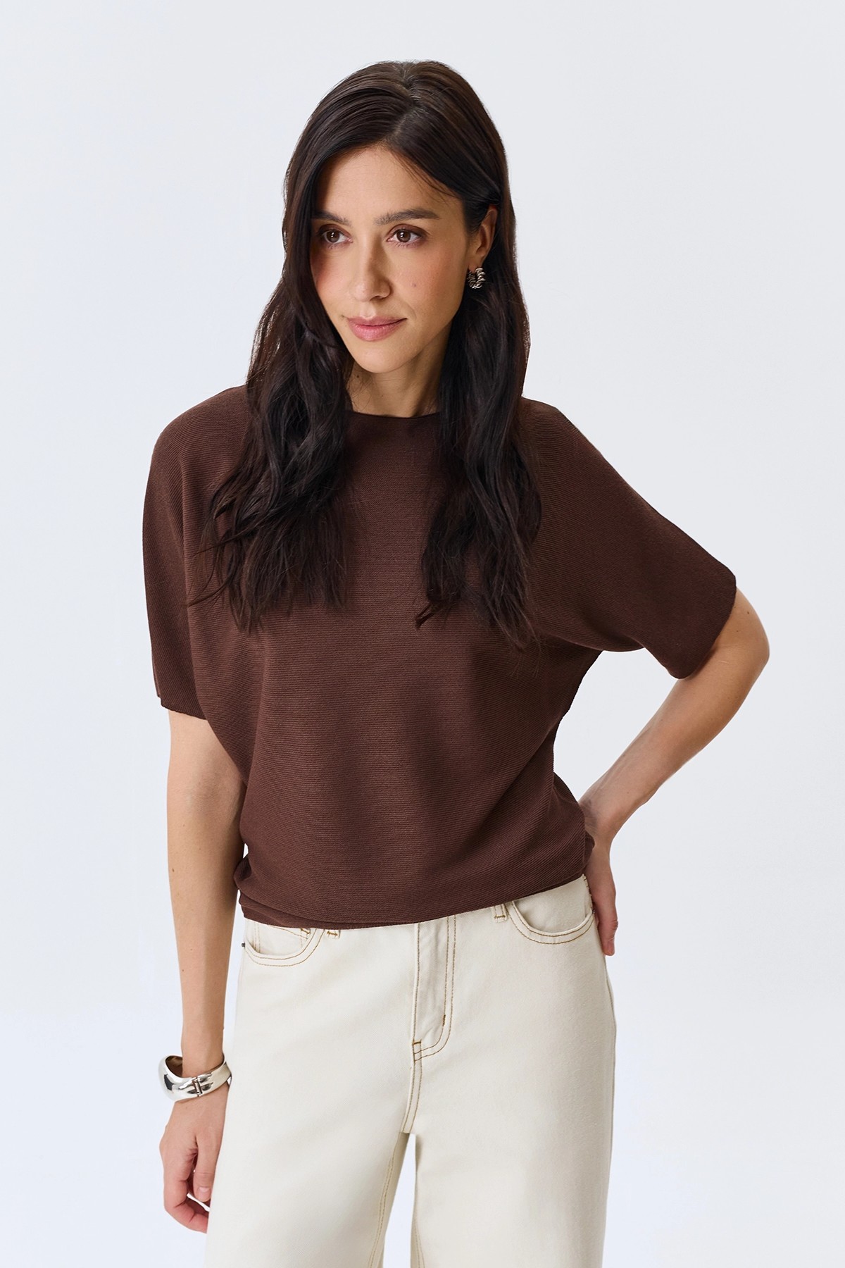 Коричневый вязаный джемпер из вискозы, 42