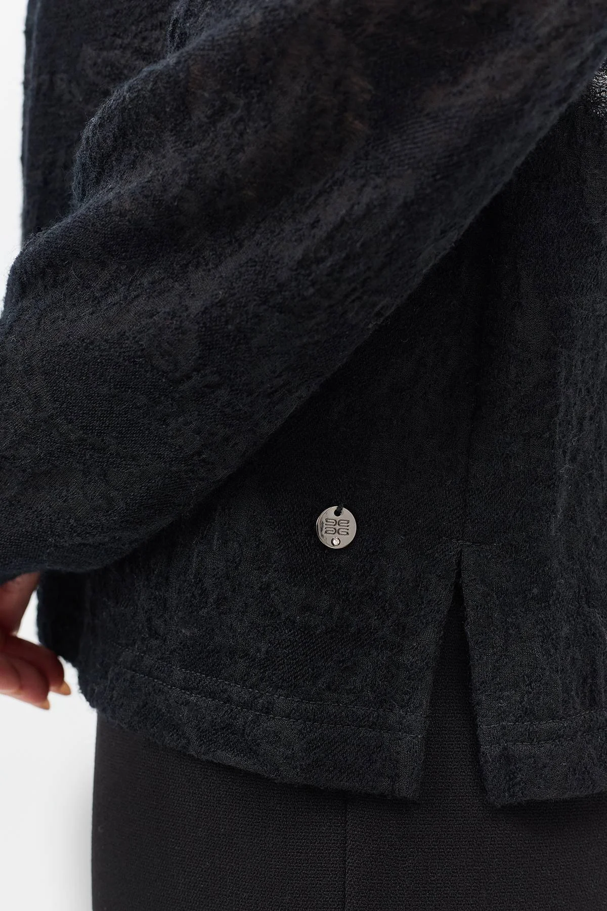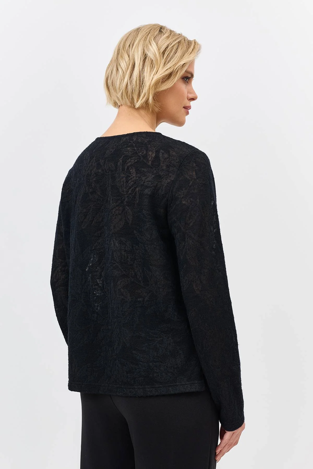 Полупрозрачный ажурный лонгслив из смесовой шерсти. Прямой силуэт. Круглый вырез. Деликатные разрезы в боковых швах. В комплекте с палантином LSZ27-636-16.