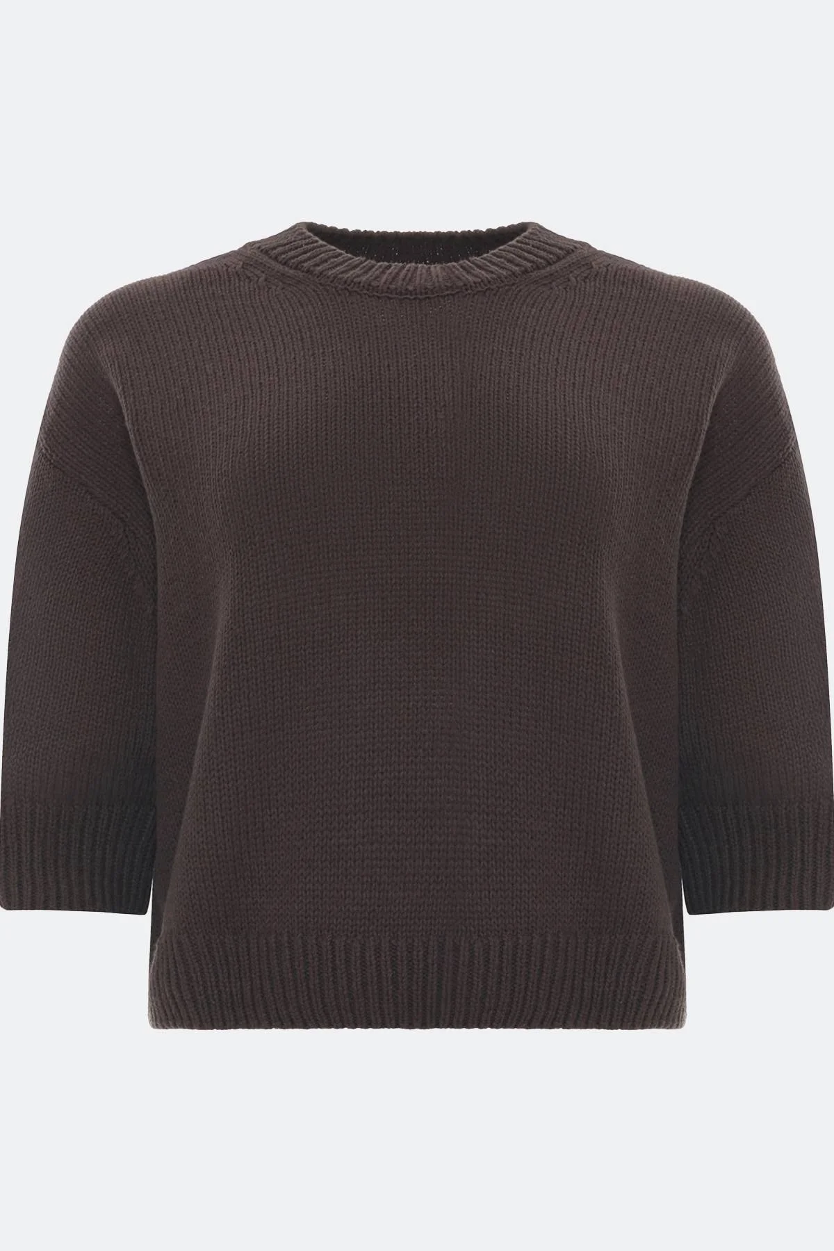 Укороченный свитер свободного силуэта. Рукава 3/4. Круглый вырез. Спущенная линия плеч. В составе хлопок. В комплекте с палантином SVG302513.