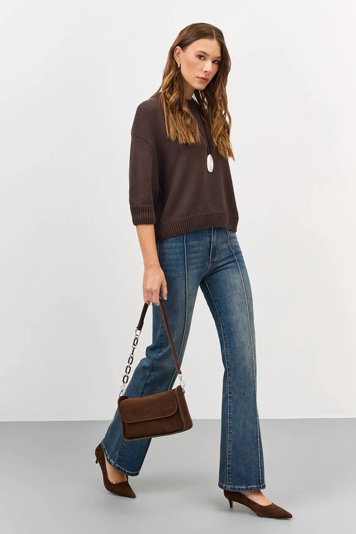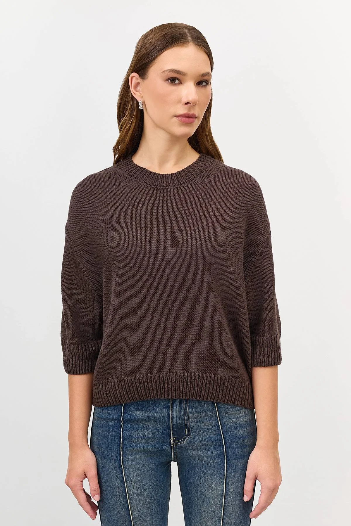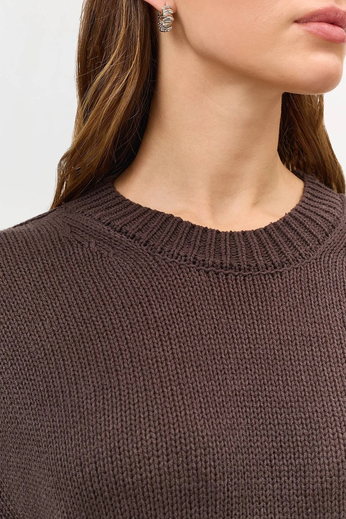Укороченный свитер свободного силуэта. Рукава 3/4. Круглый вырез. Спущенная линия плеч. В составе хлопок. В комплекте с палантином SVG302513.