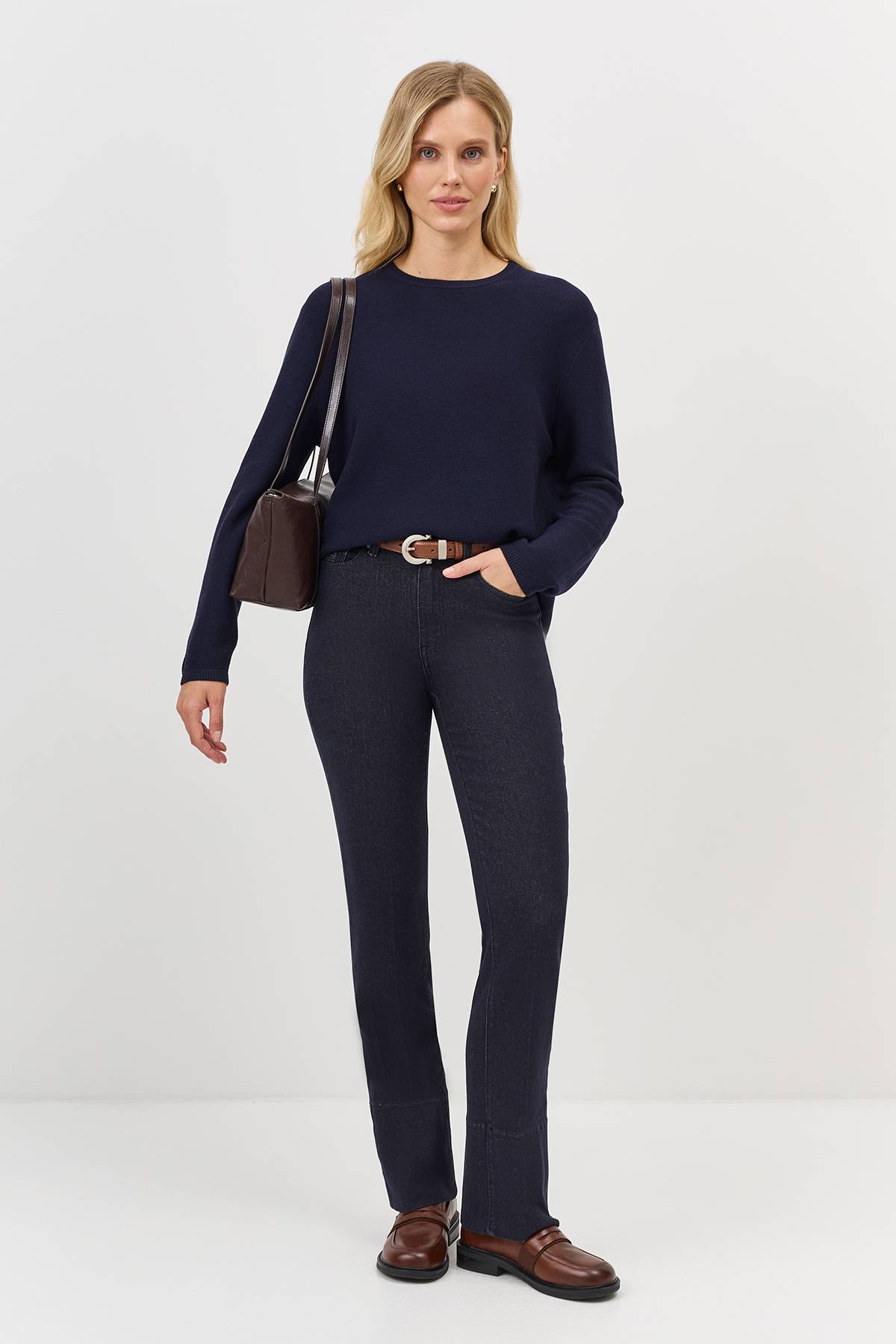 Базовый джемпер из смесовой вискозы и хлопка. Прямой силуэт. Круглый вырез. Фактурная вязка.