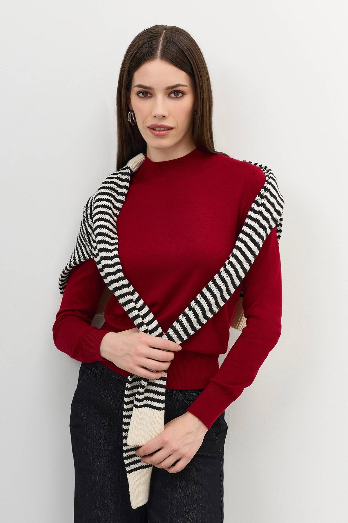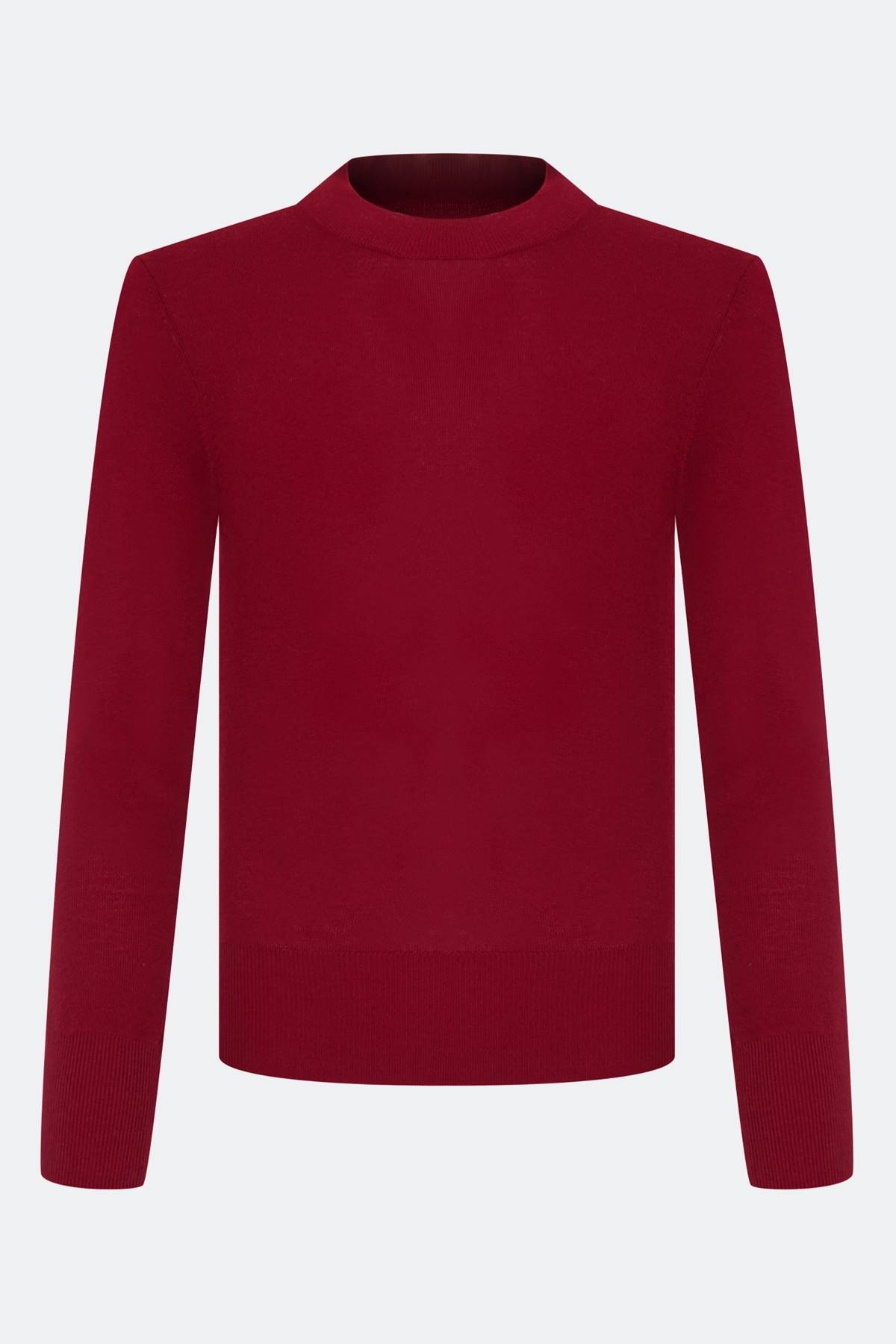 Яркий вязаный джемпер с шелком в составе. Полуприталенный силуэт. Воротник небольшая стойка. Манжеты по низу рукавов и изделия. В комплекте с палантином LG34-439-01.