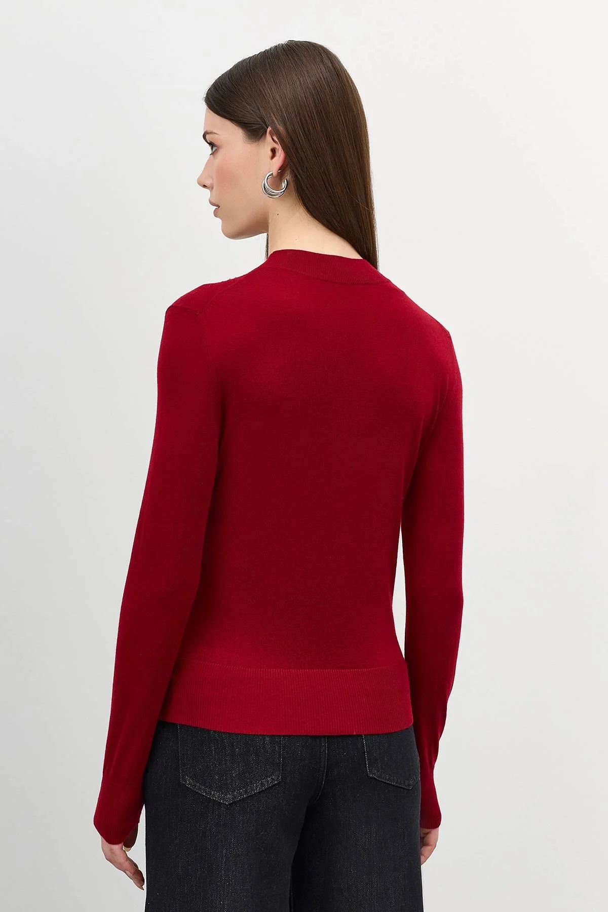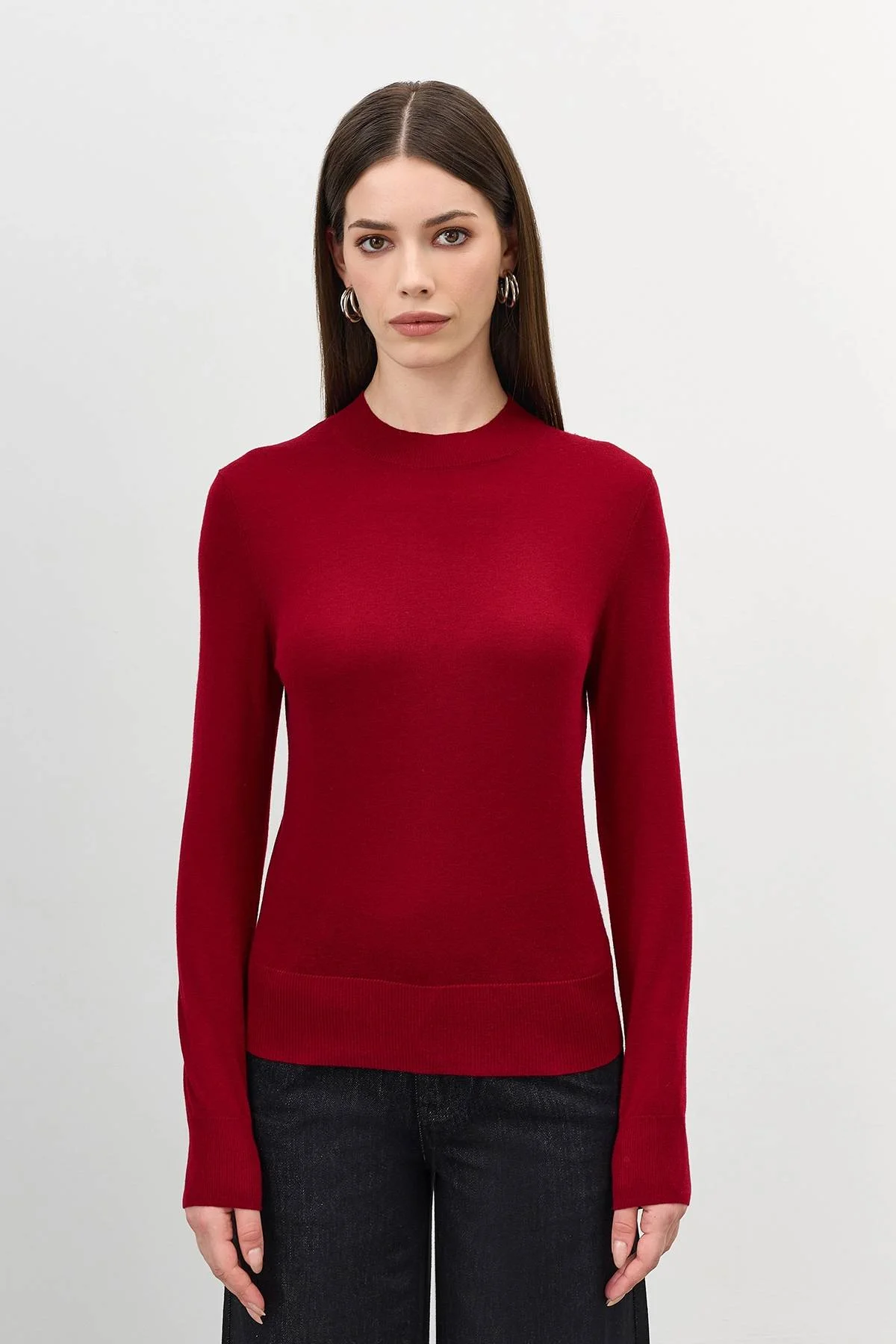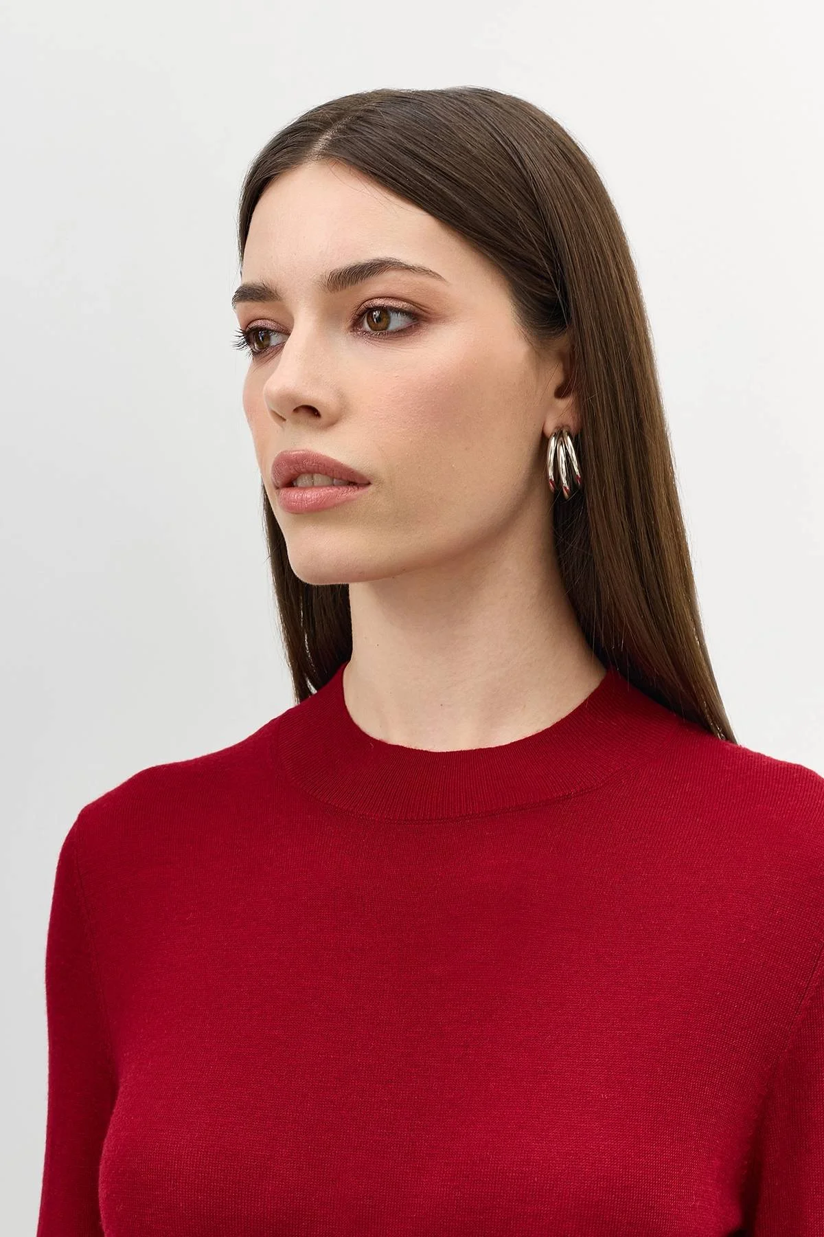 Яркий вязаный джемпер с шелком в составе. Полуприталенный силуэт. Воротник небольшая стойка. Манжеты по низу рукавов и изделия. В комплекте с палантином LG34-439-01.