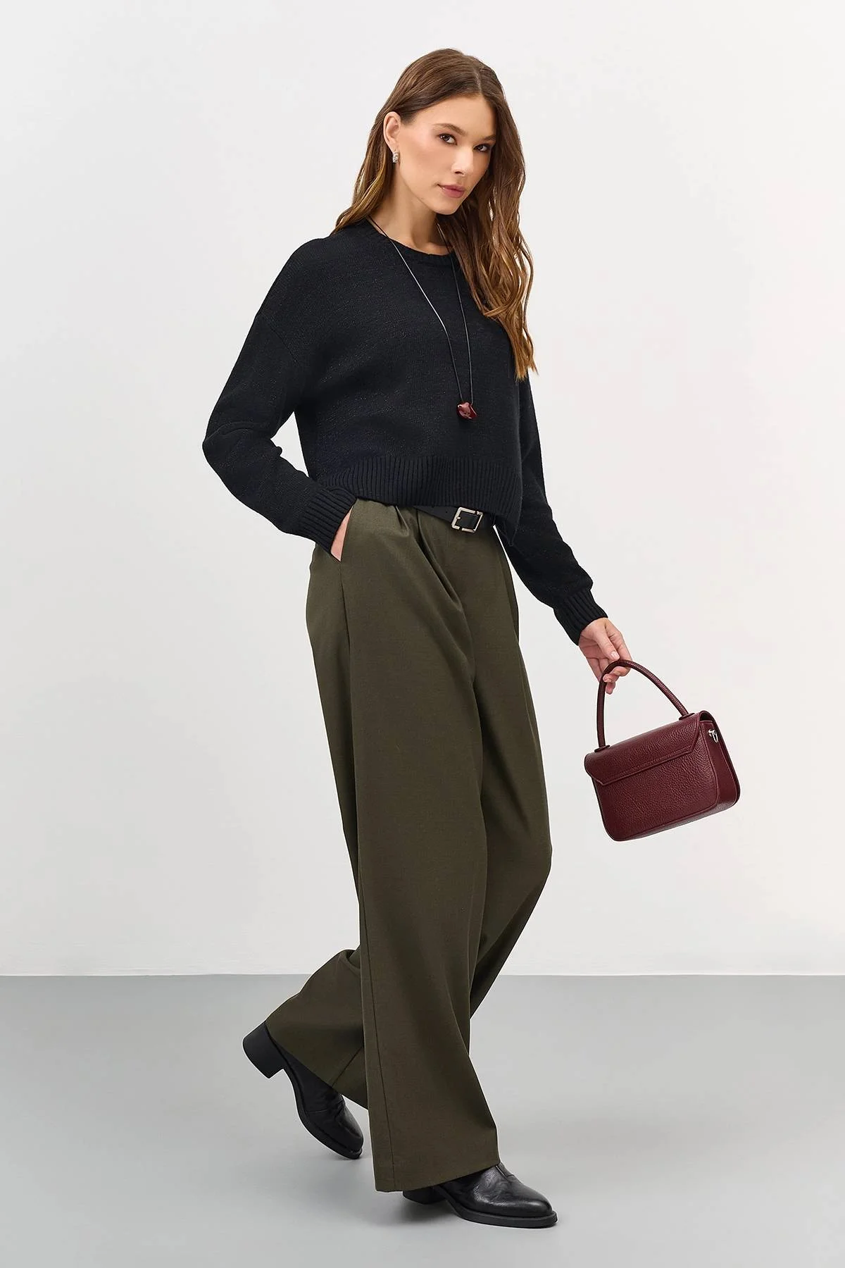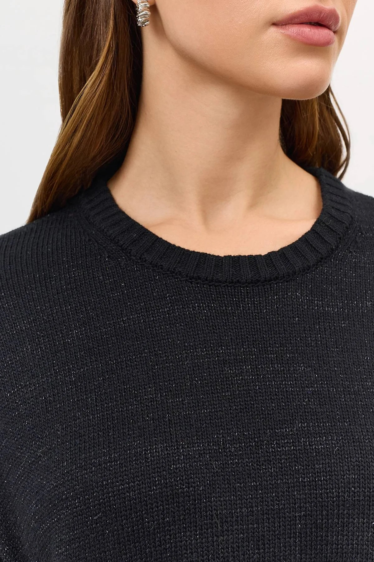 Укороченный джемпер с ангорой и вискозой в составе. Свободный силуэт. Круглый вырез. Дополнен деликатным люрексом. Манжеты по горловине, низу изделия и рукавов. В комплекте с палантином LBL19-856-12.