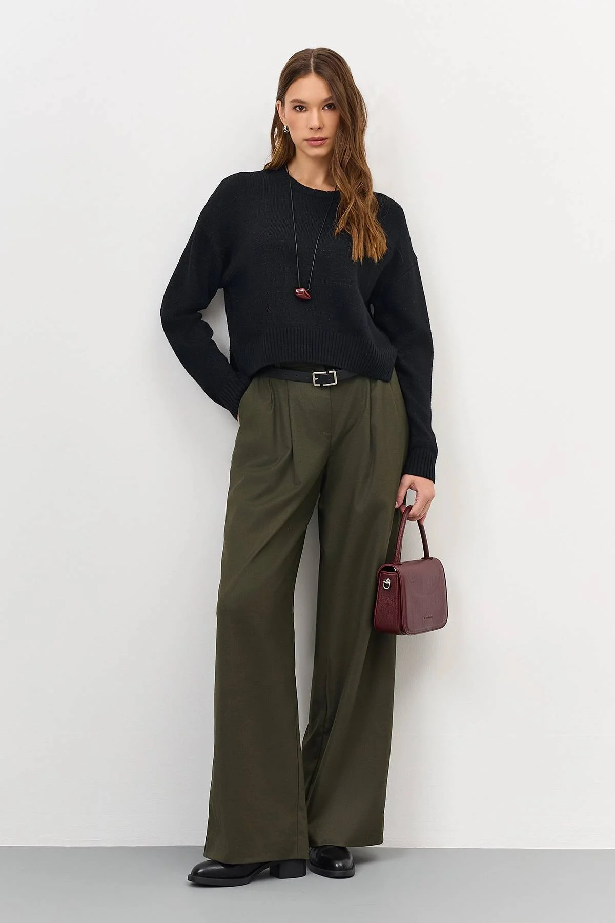 Укороченный джемпер с ангорой и вискозой в составе. Свободный силуэт. Круглый вырез. Дополнен деликатным люрексом. Манжеты по горловине, низу изделия и рукавов. В комплекте с палантином LBL19-856-12.