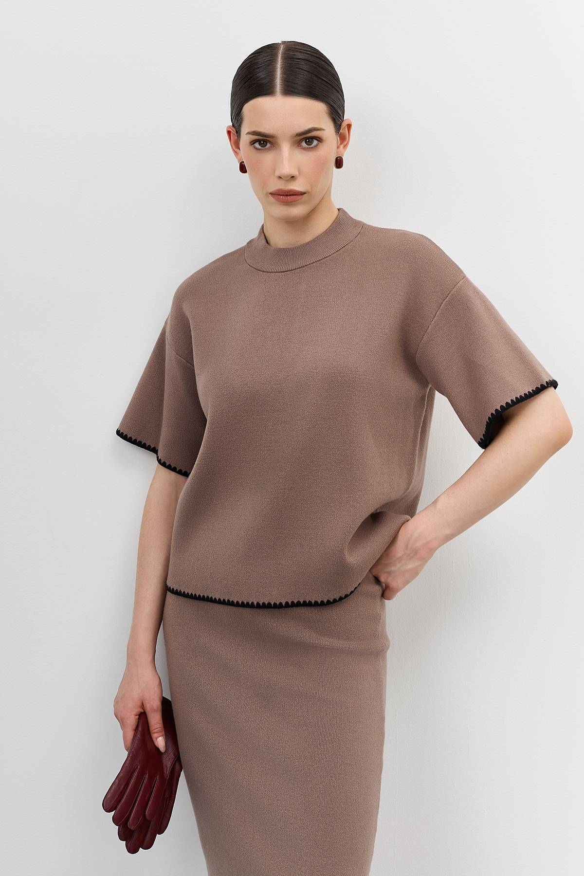 Лимитированная серия свободный джемпер с коротким рукавом и ремень, 42