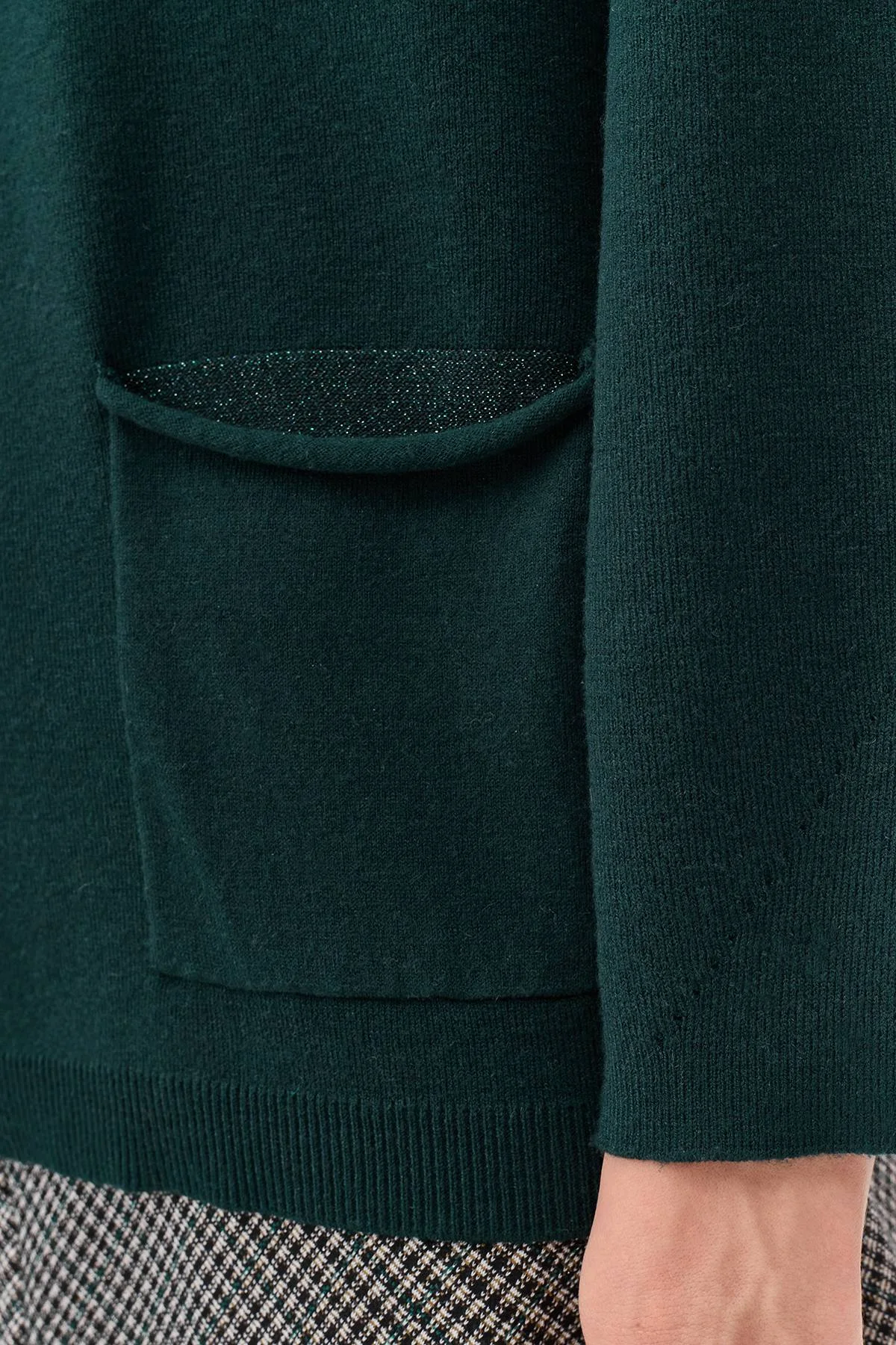 Вязаный джемпер глубокого изумрудного цвета с кашемиром в составе. Свободный силуэт. Воротник стойка. Укороченные рукава. Дополнен накладным карманом с мерцающим подзором. В комплекте с палантином LBL54-645-01.