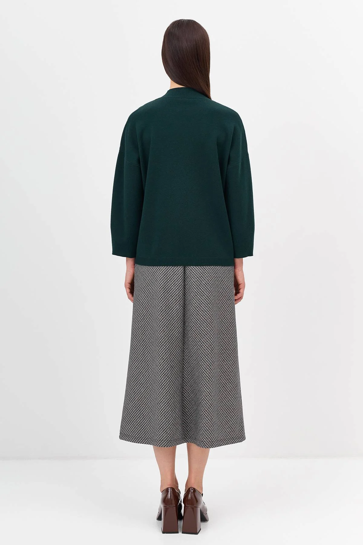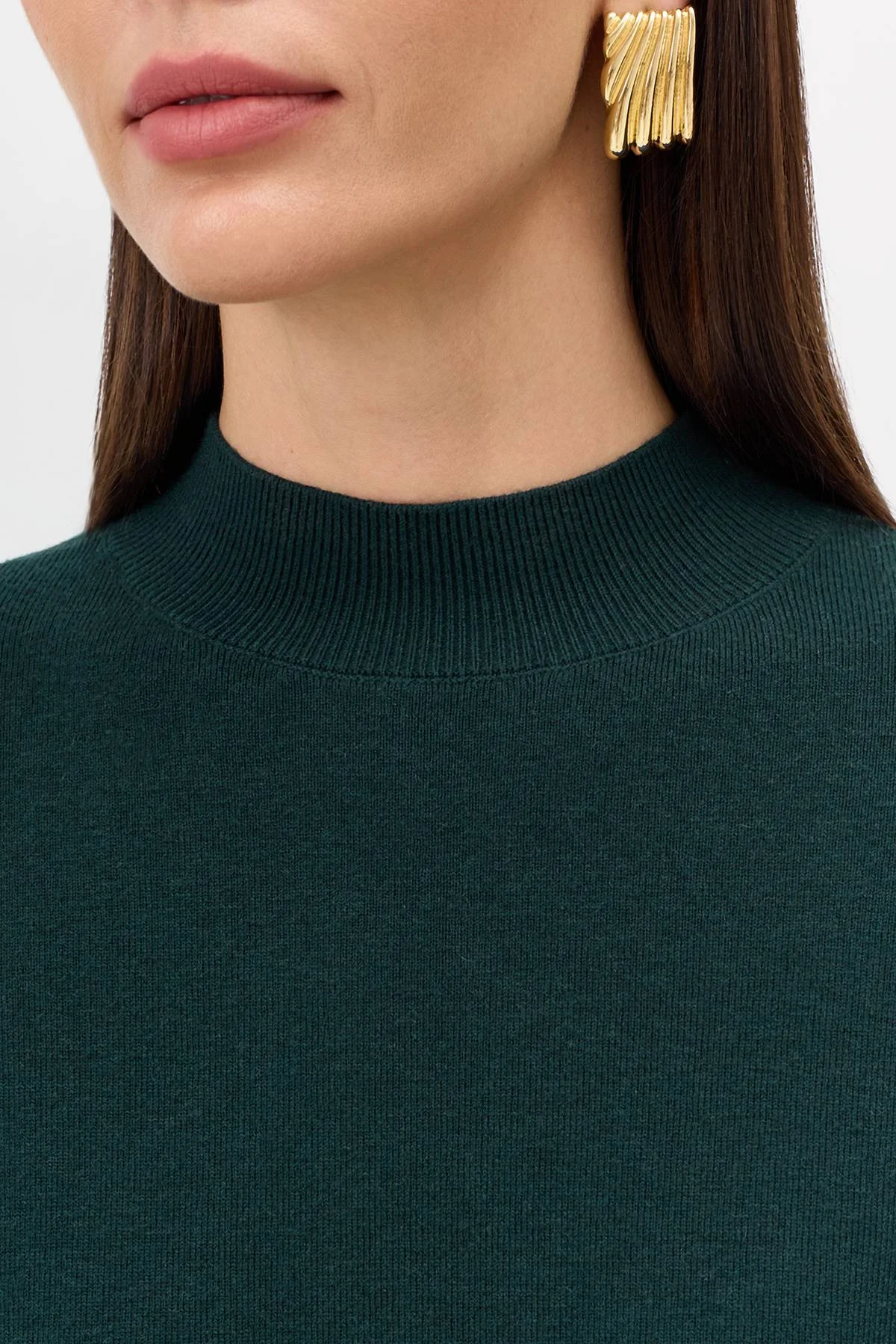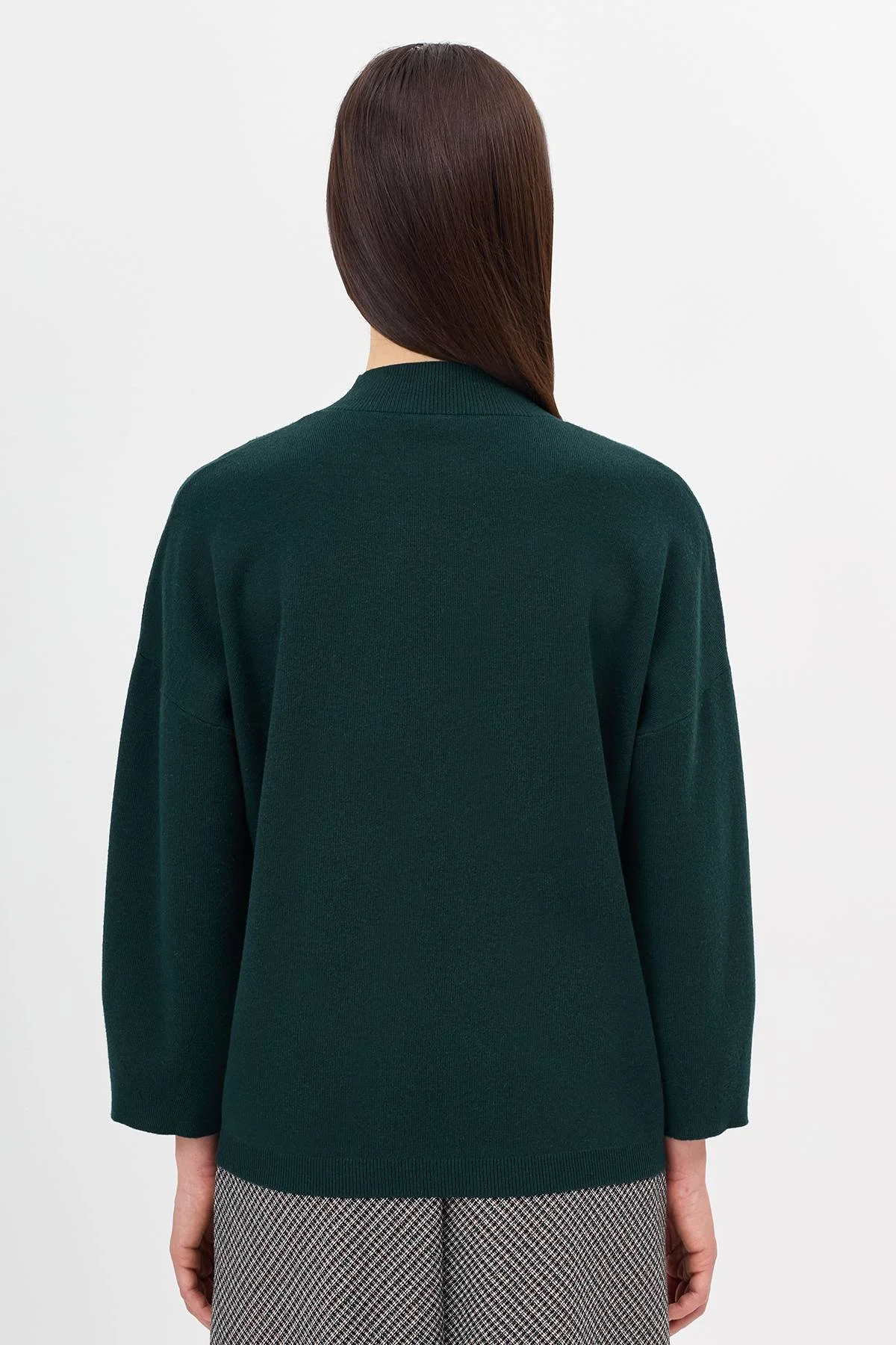 Вязаный джемпер глубокого изумрудного цвета с кашемиром в составе. Свободный силуэт. Воротник стойка. Укороченные рукава. Дополнен накладным карманом с мерцающим подзором. В комплекте с палантином LBL54-645-01.