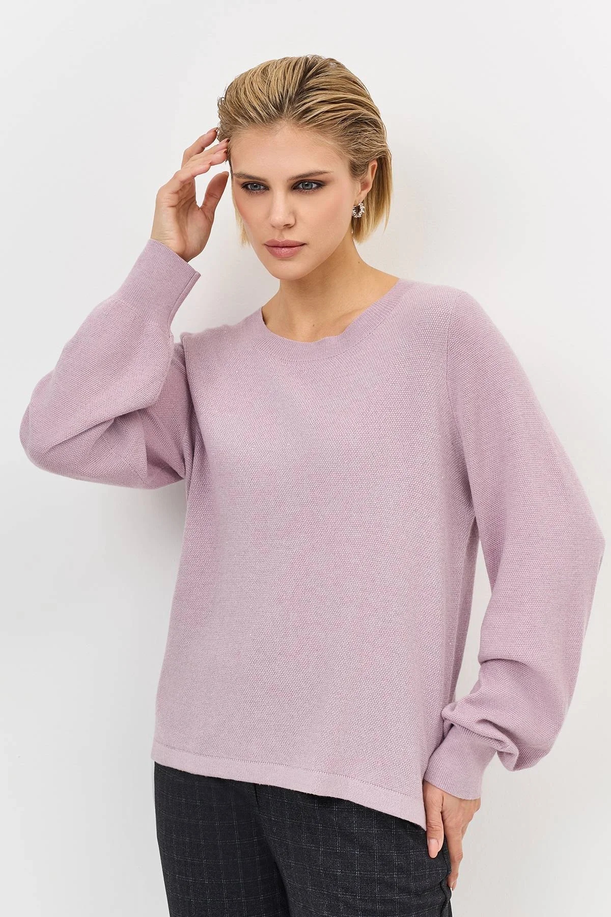 Яркий джемпер с кашемиром в составе. Свободный силуэт. Фактурная вязка. Круглый вырез. Спущенная линия плеч. Рукава с манжетами расширены к низу. Деликатные боковые разрезы. В комплекте с палантином LG33-609-08.