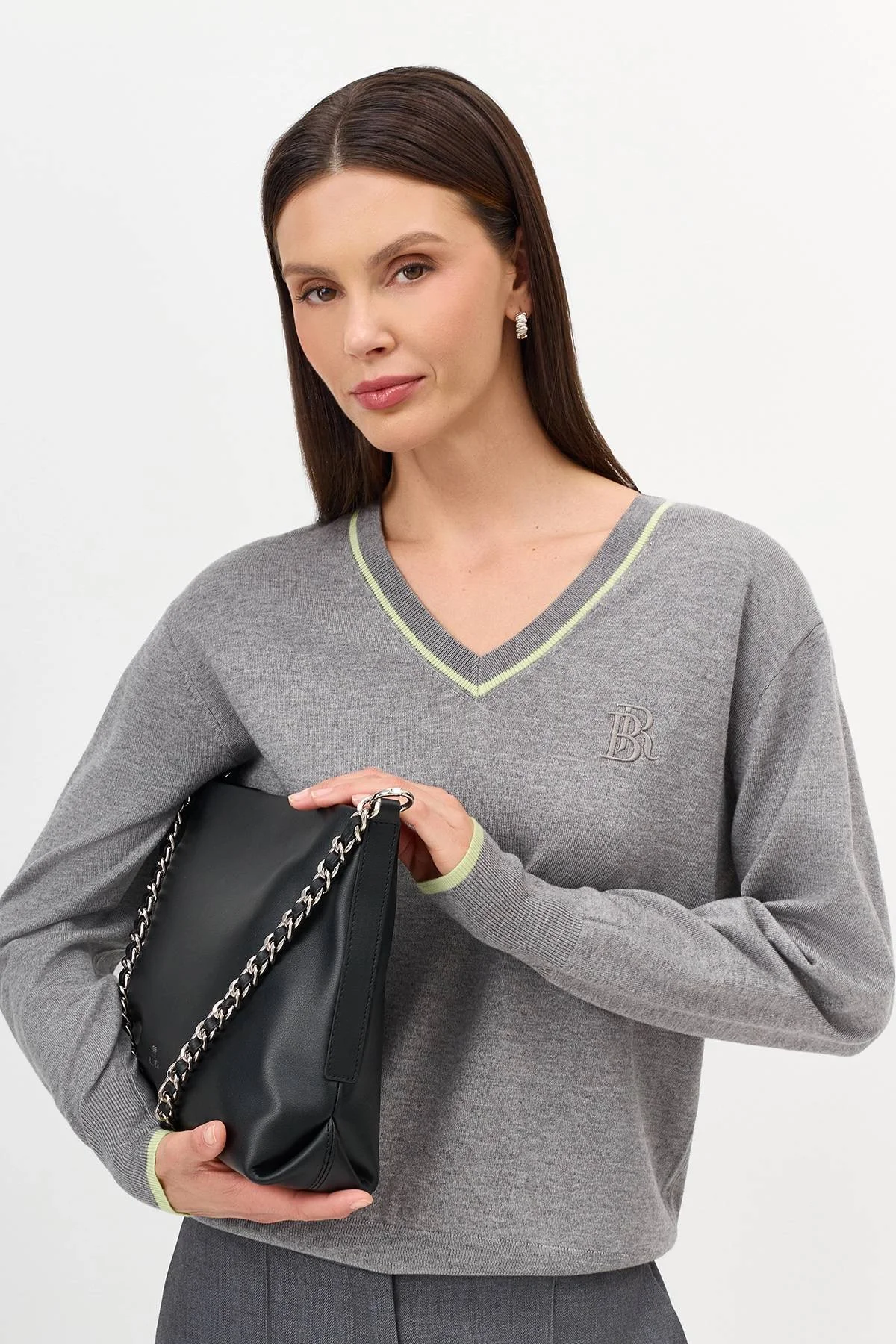 Лимитрированная серия меланжевый джемпер с ярким кантом и ремень, 44