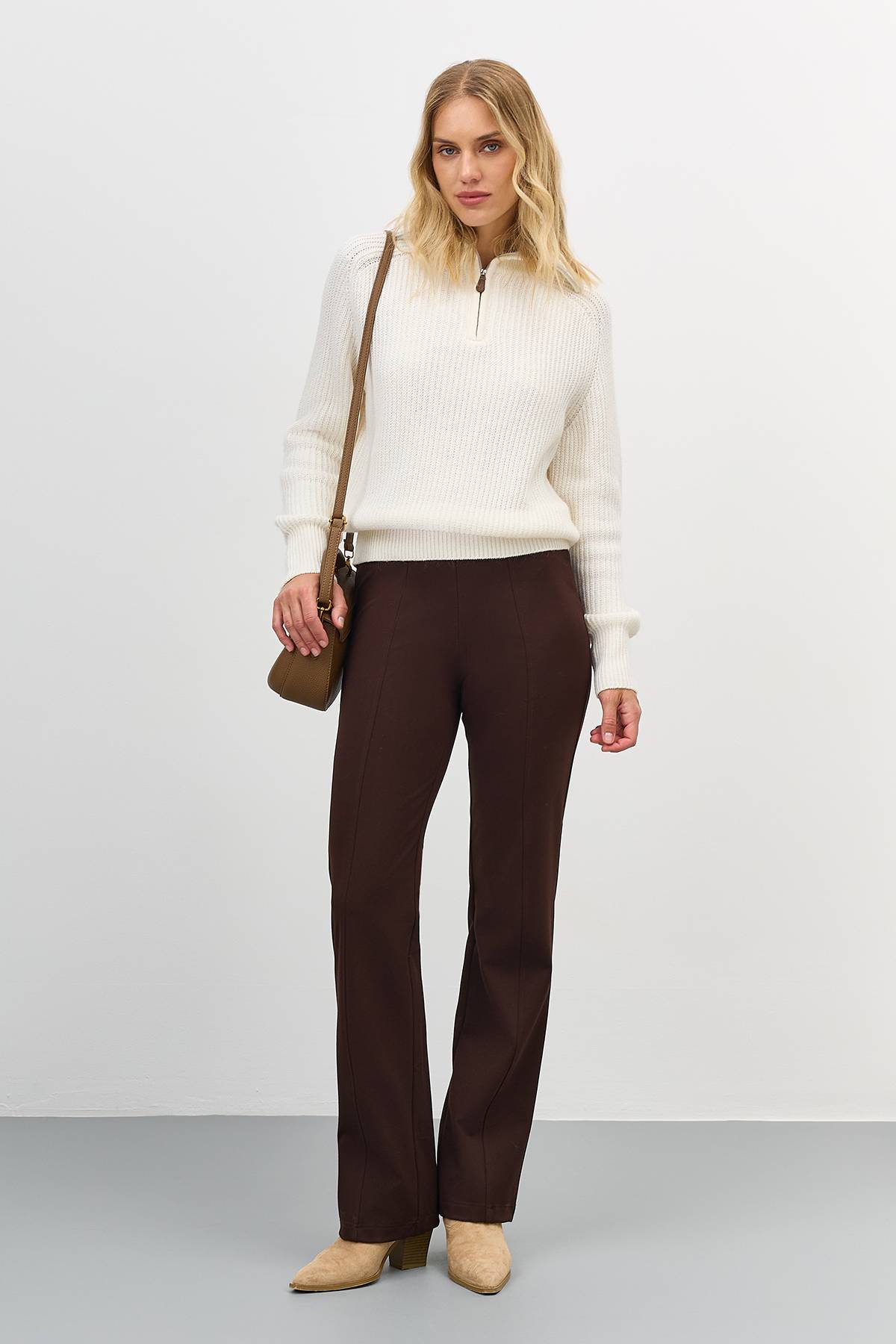 Лимитированная серия свитер с отложным воротником на молнии и ремень, 50